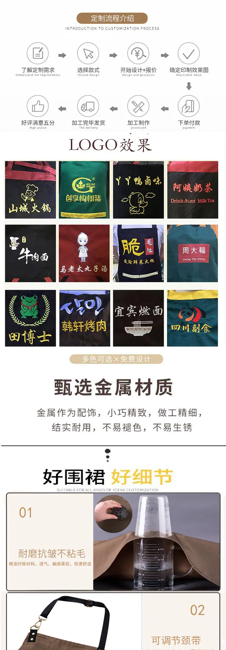Nuestra fábrica es un fabricante profesional de delantales con 20 años de experiencia, con una amplia experiencia en producción y personalización. Nuestra producción diaria supera las 8000 unidades. Contamos con un completo equipo de producción y un servicio integral de impresión y bordado personalizado. Ofrecemos muestras personalizadas, OEM y envío directo para satisfacer diversas necesidades. Ofrecemos exclusivamente para comercio electrónico internacional: embalaje OPP, embalaje, etiquetado y otros servicios. Le ofrecemos un servicio posventa sin complicaciones, una respuesta rápida y un servicio atento en todo momento.