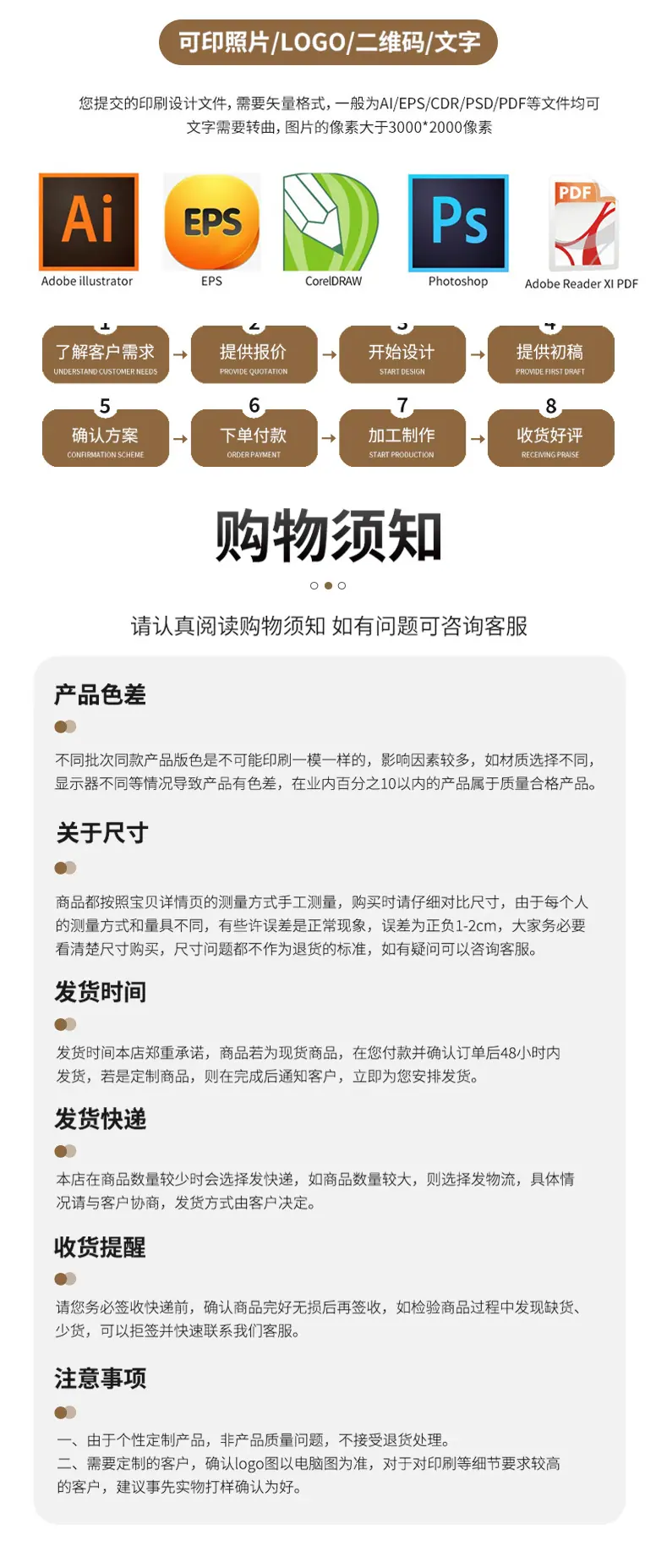 Comuníquese con el cliente para realizar la personalización y proporciónele los archivos fuente de LOGE, las especificaciones, las cantidades y los requisitos para que el servicio de atención al cliente pueda cotizar con precisión.