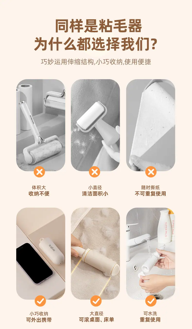 Rodillo Quita Pelusa Lavable de Mango Recto Quita Pelusa para Ropa Quita Pelo de Mascota Rodillo Adhesivo Quita Polvo