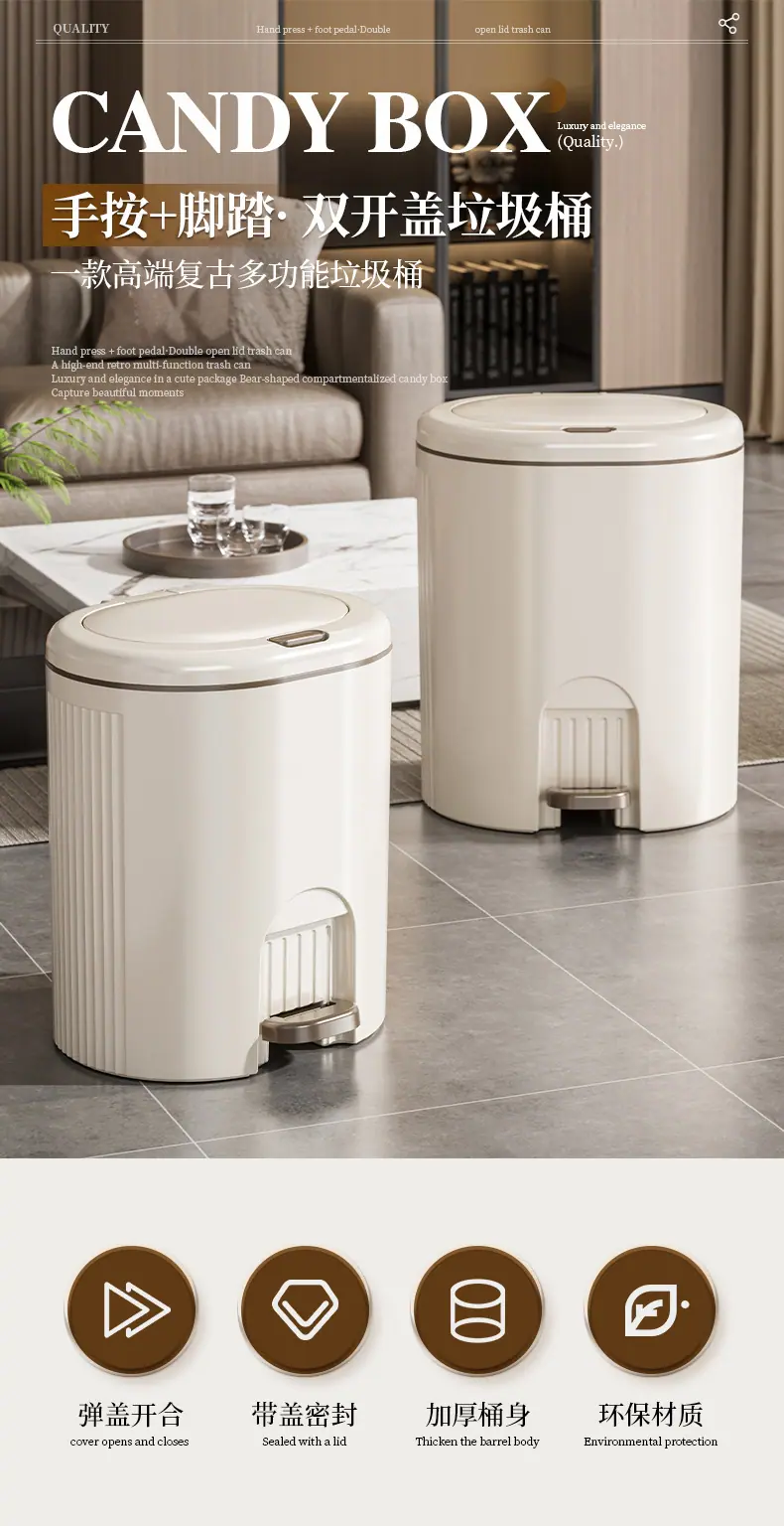 8L Cream White Step-on + Hand-press [Recommended for Bathroom/Study]