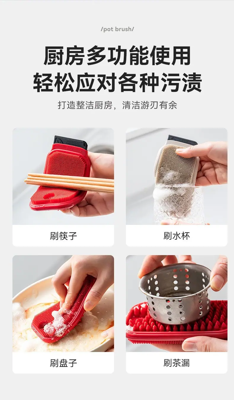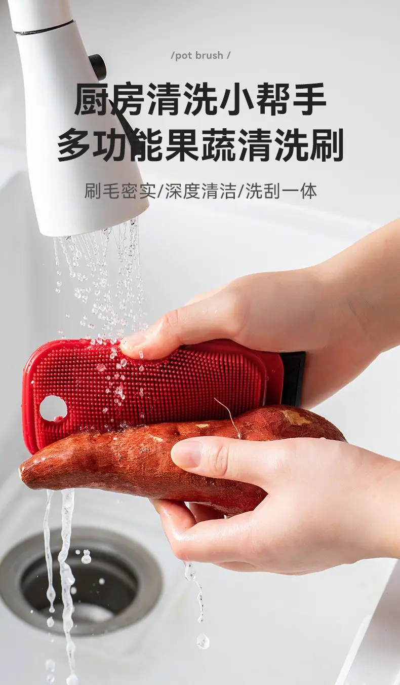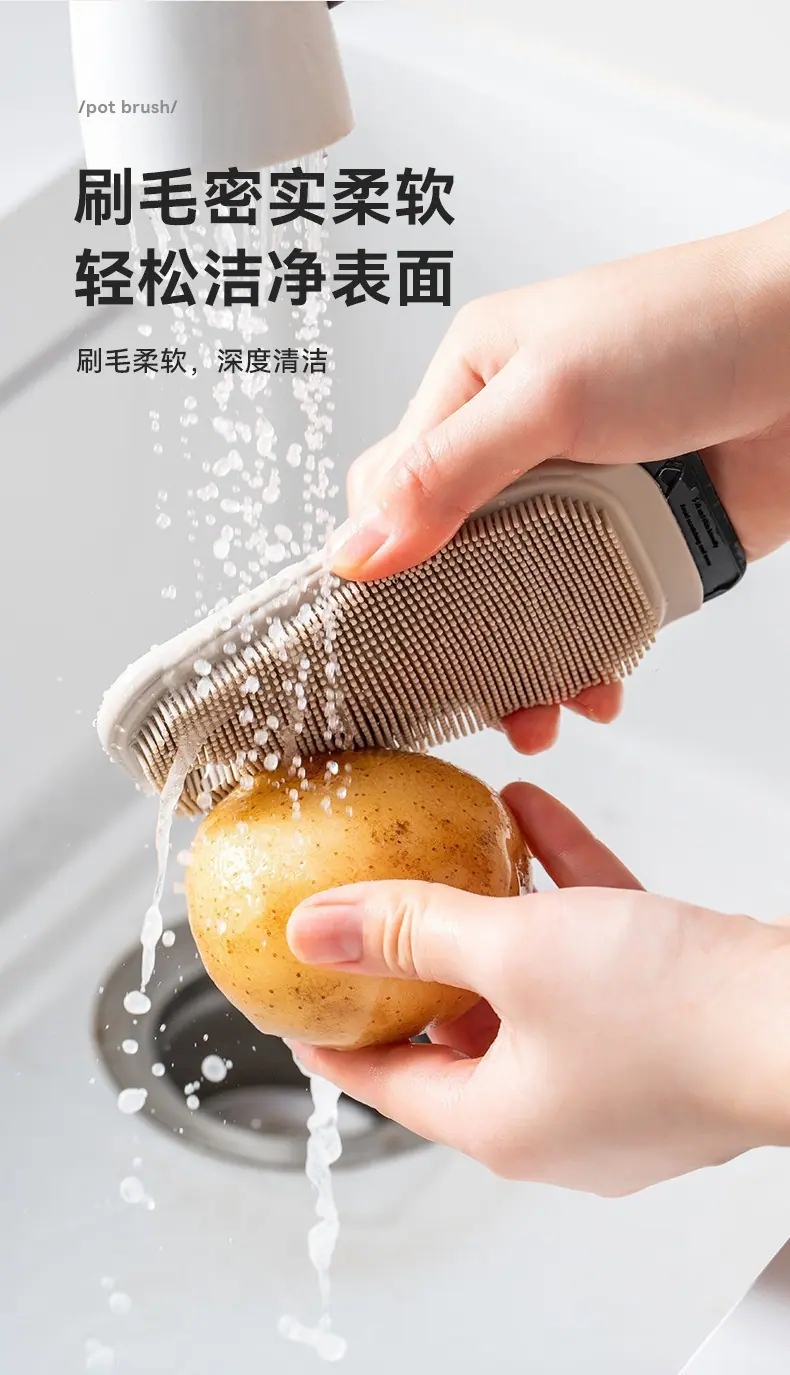 Cepillo de Limpieza Doméstico Multifuncional para Frutas y Verduras Cepillo para Limpiar Platos de Cocina Diseño Integrado de Lavado y Raspado Cepillo de Silicona Duradero
