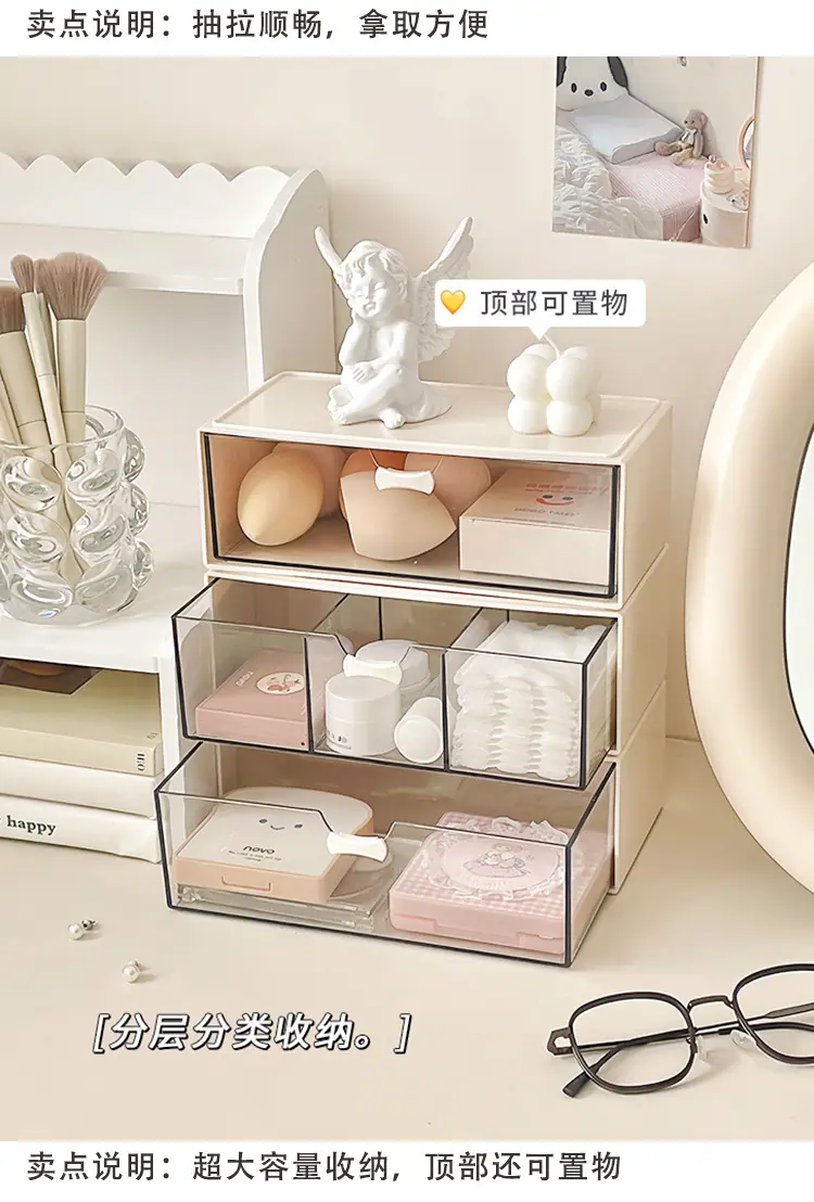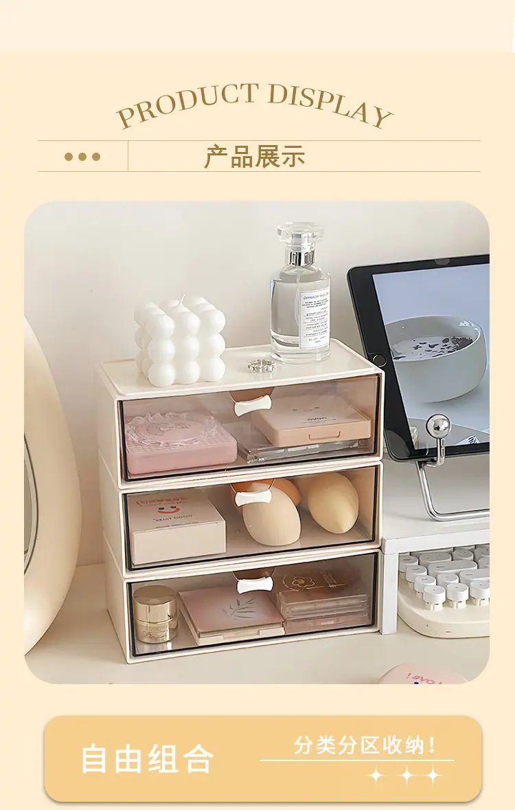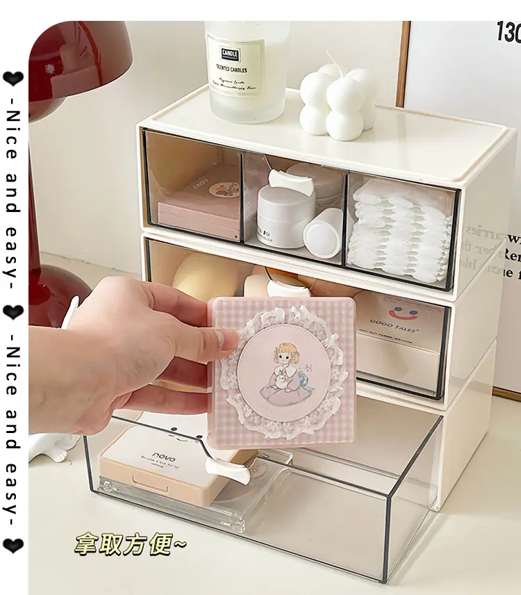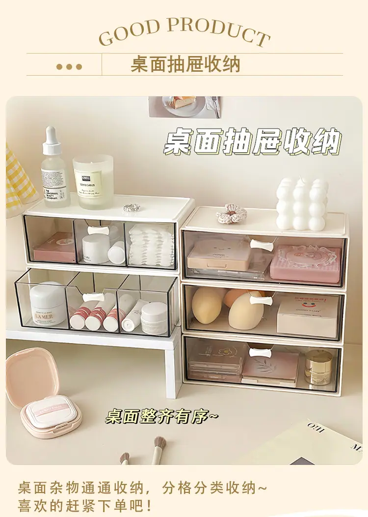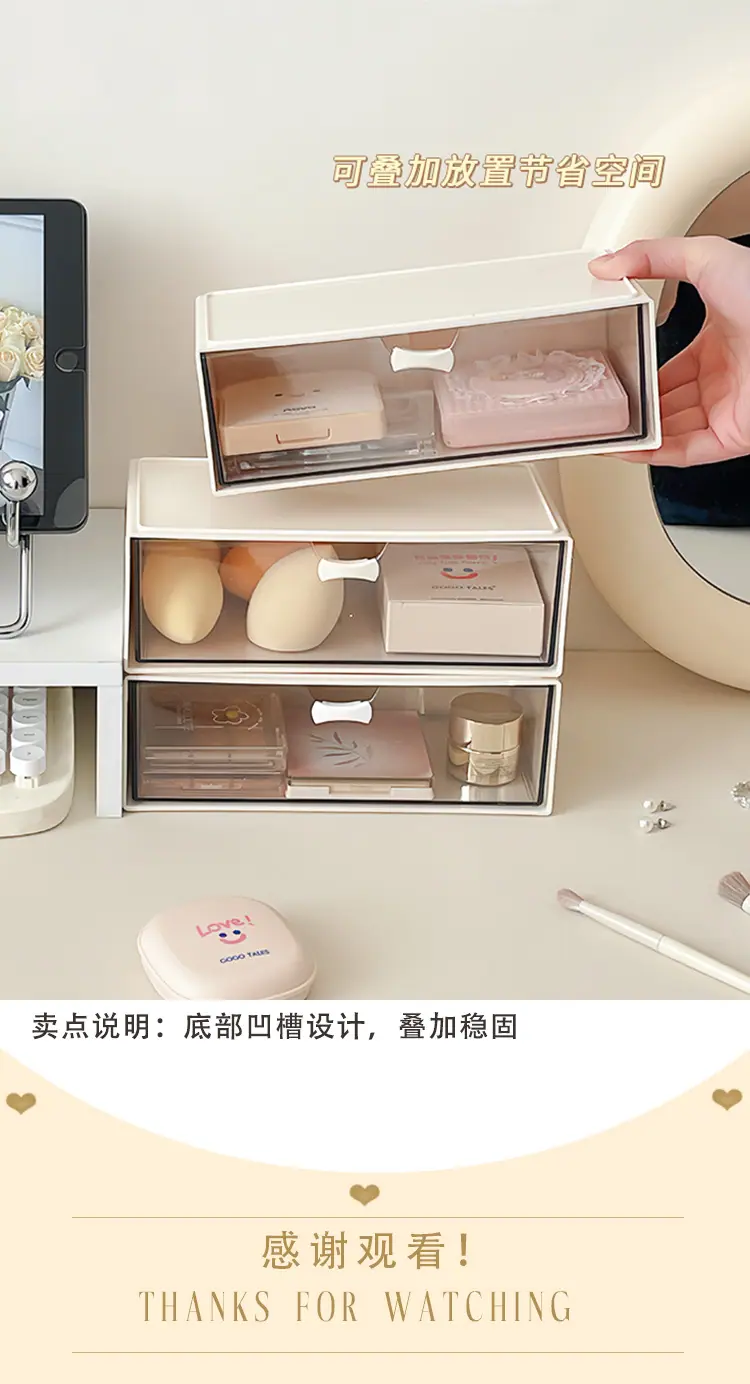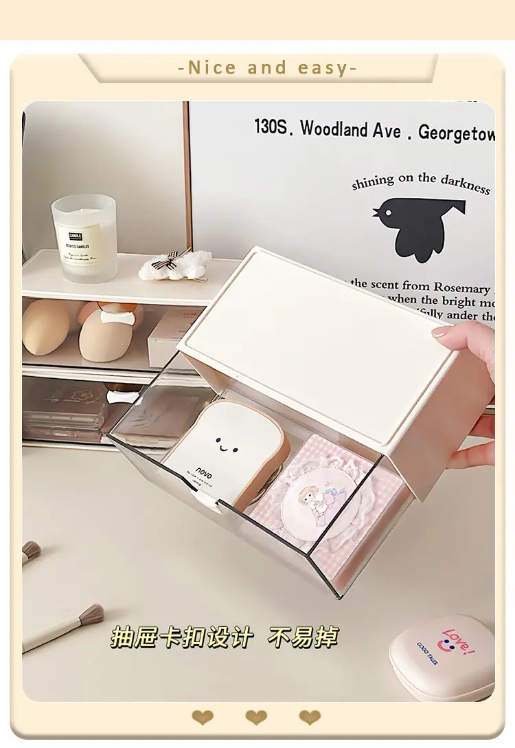 Caja de Almacenamiento de Escritorio Acrílico Transparente Gabinete de Almacenamiento Tipo Cajón Organizador de Cosméticos Estante para Desorden de Oficina