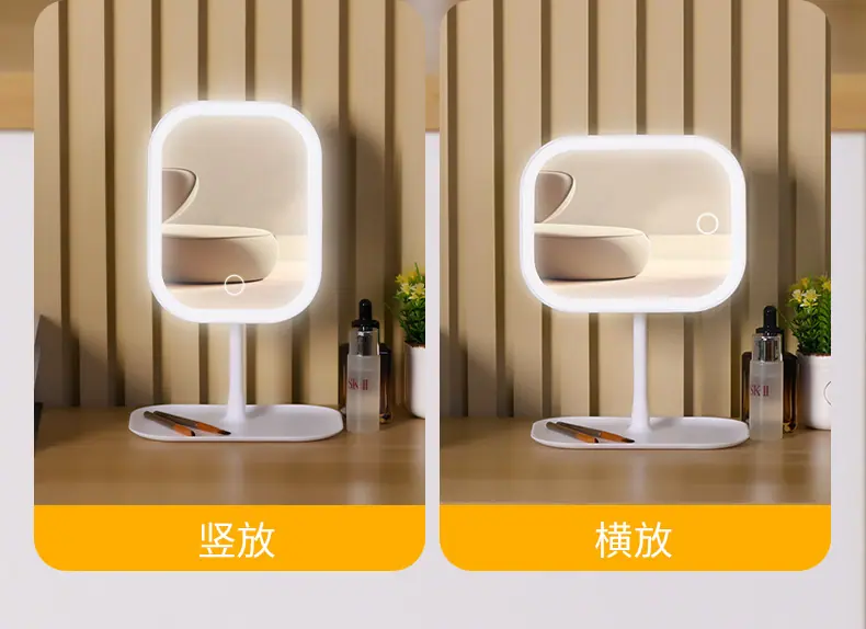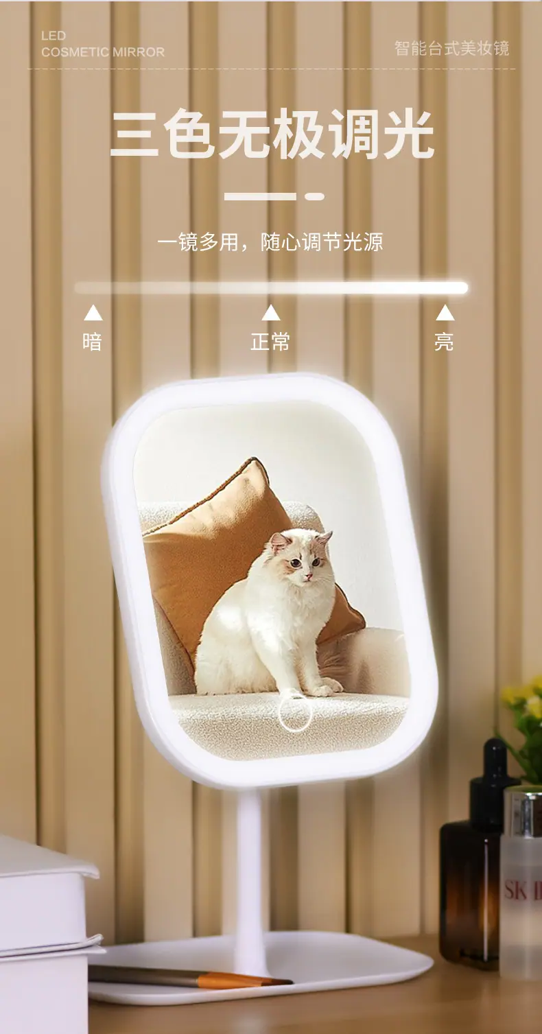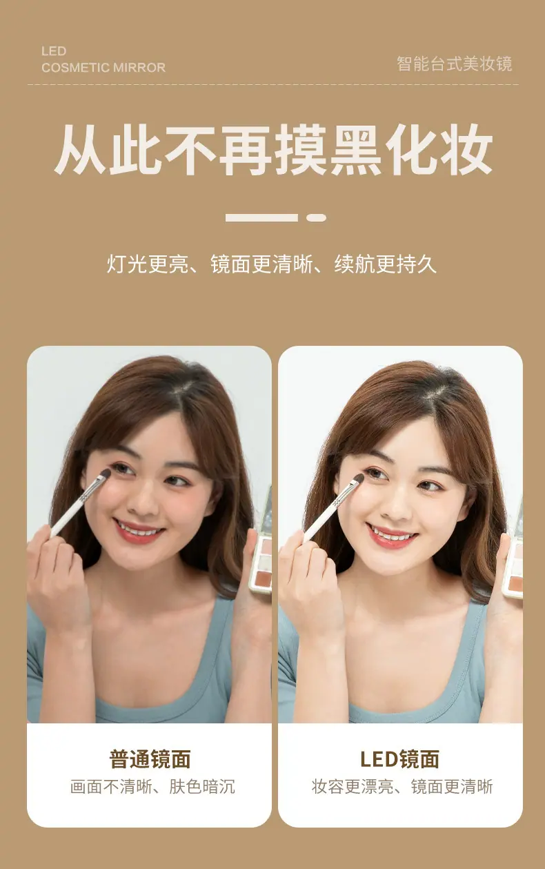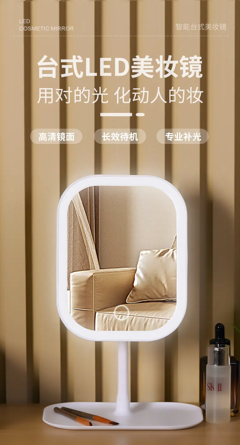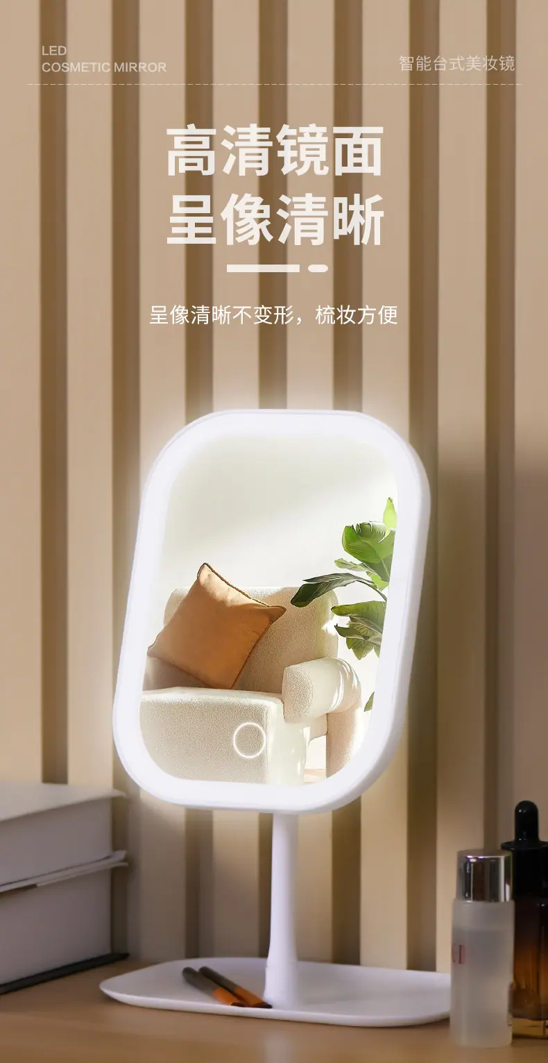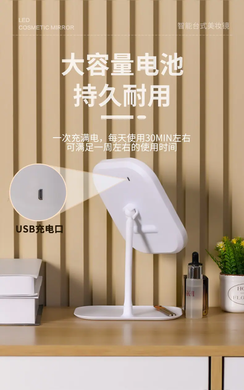 Luz de espejo de maquillaje LED transfronteriza Espejo inteligente multifuncional de escritorio europeo con luz ajustable Espejo de tocador de mesa