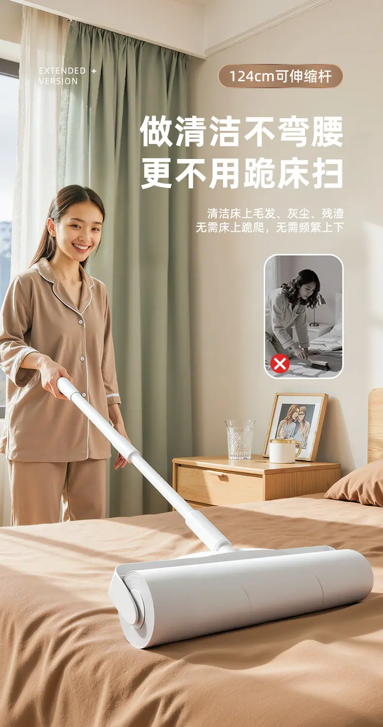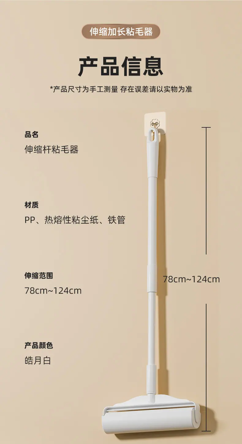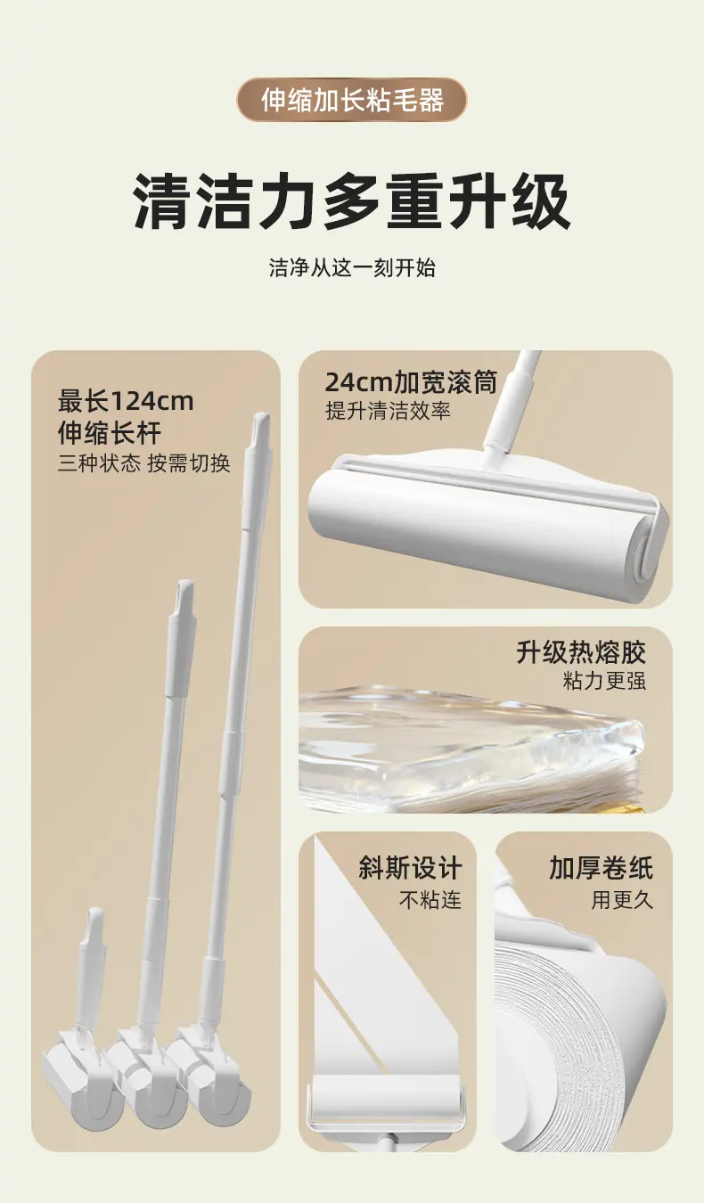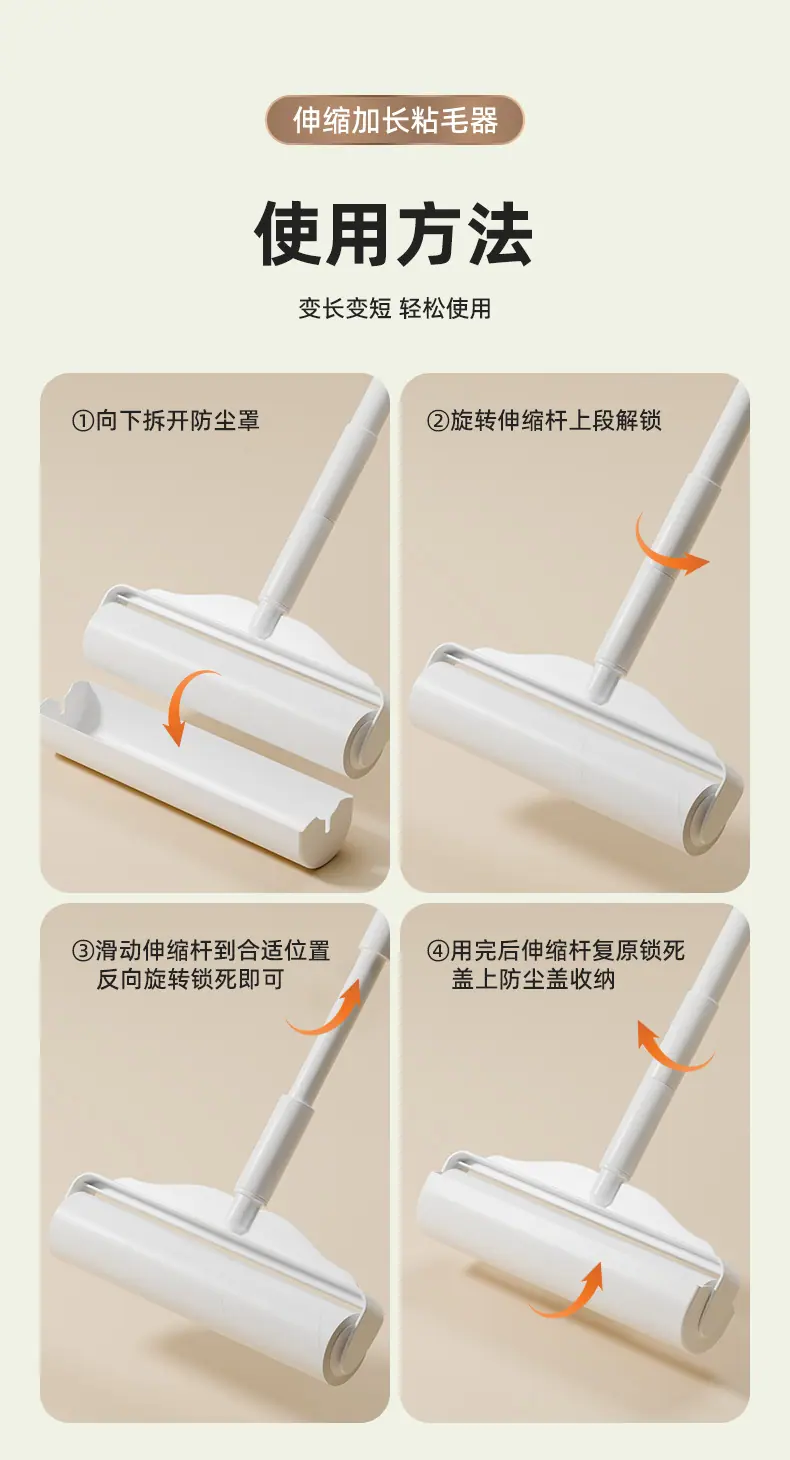Rodillo Quita Pelusa Mango Largo Retráctil Removedor de Pelo de Mascota Artefacto Hogar Cama Piso Tamaño Grande Mango Largo Cepillo Rodillo Quita Pelo