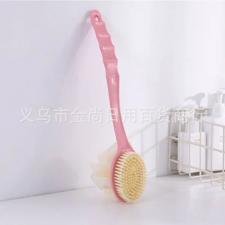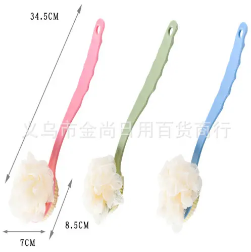 Cepillo de Bola de Baño Dos en Uno para Frotar la Espalda, Masaje Corporal, Exfoliante, Frotado de Lodo de Doble Cara, Cepillo de Baño de Cerdas Suaves con Mango Largo