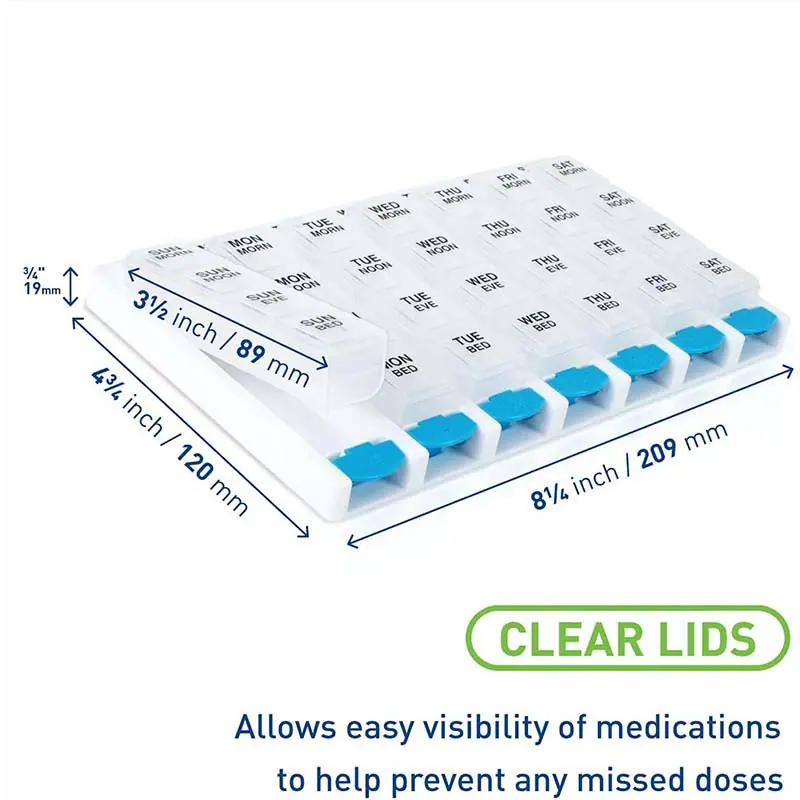 Mini pastillero portátil, pastillero de siete días con 28 compartimentos, caja de almacenamiento de medicamentos de aspecto elegante, caja de almacenamiento para el hogar
