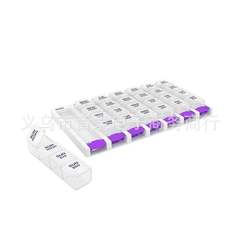 Compra Mini pastillero portátil, pastillero de siete días con 28 compartimentos, caja de almacenamiento de medicamentos de aspecto elegante, caja de almacenamiento para el hogar al por mayor en Joom.pro