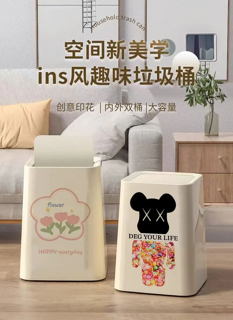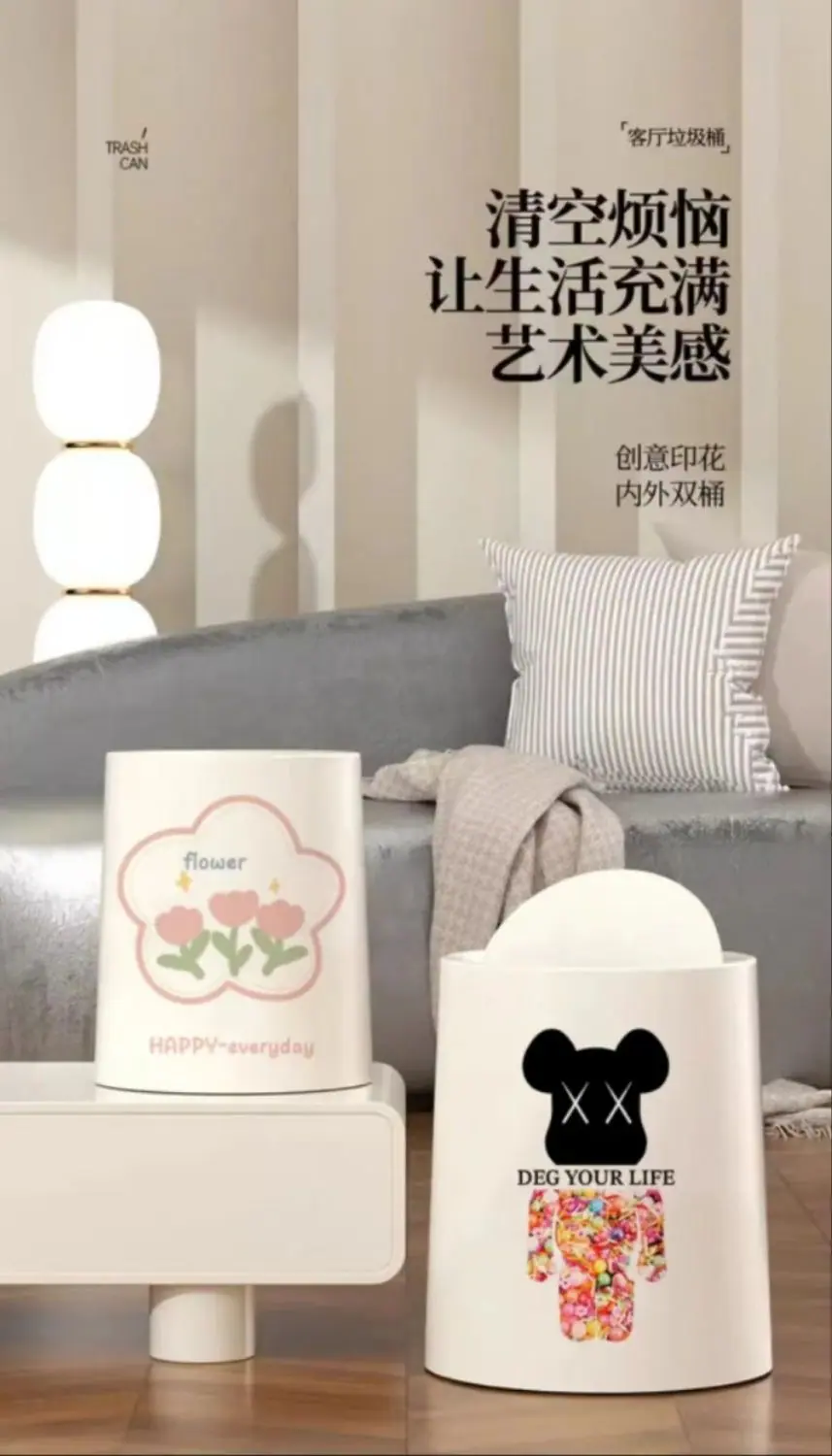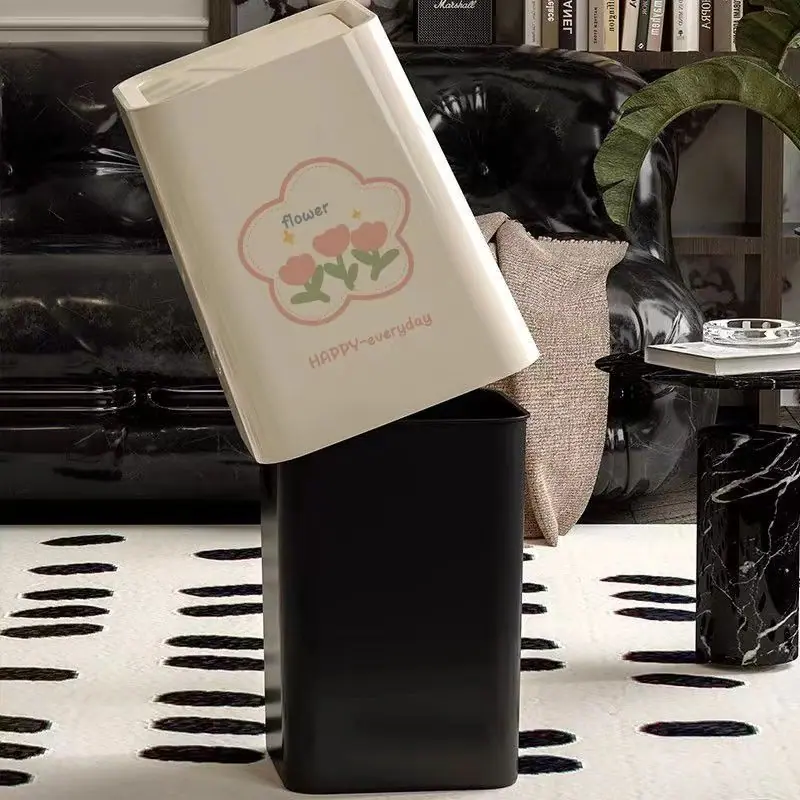 Compra Bote de Basura para el Hogar Nuevo de Alto Valor Sala de Estar Dormitorio Estilo Crema de Lujo Ligero Grande Doble Capa Tapa Oscilante Cesto para Papel al por mayor en Joom.pro