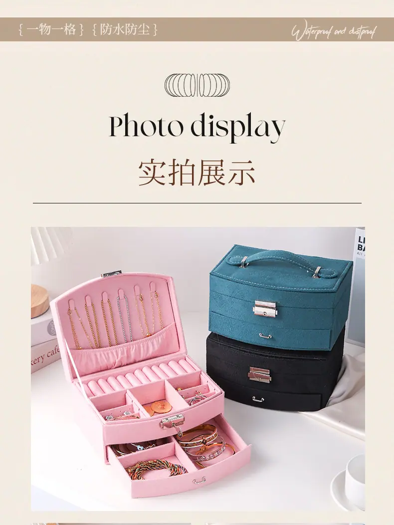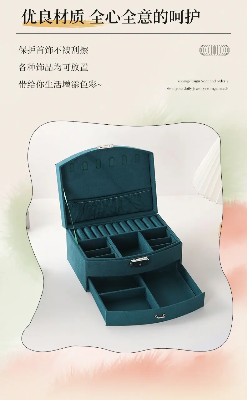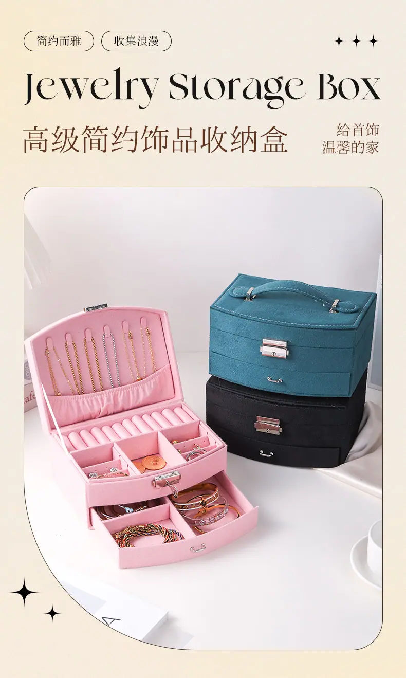 Caja de joyería de terciopelo multicapa transfronteriza, caja de almacenamiento tipo cajón, caja de joyería para anillos y aretes, caja de joyería de almacenamiento de gran capacidad