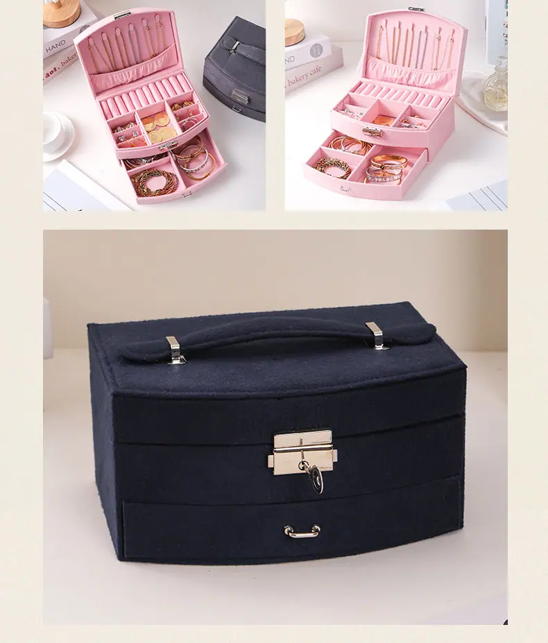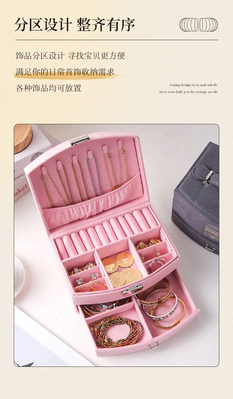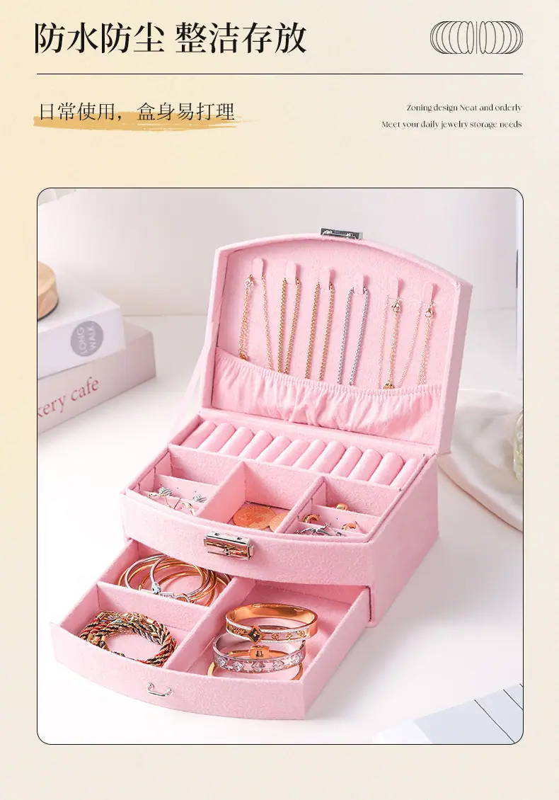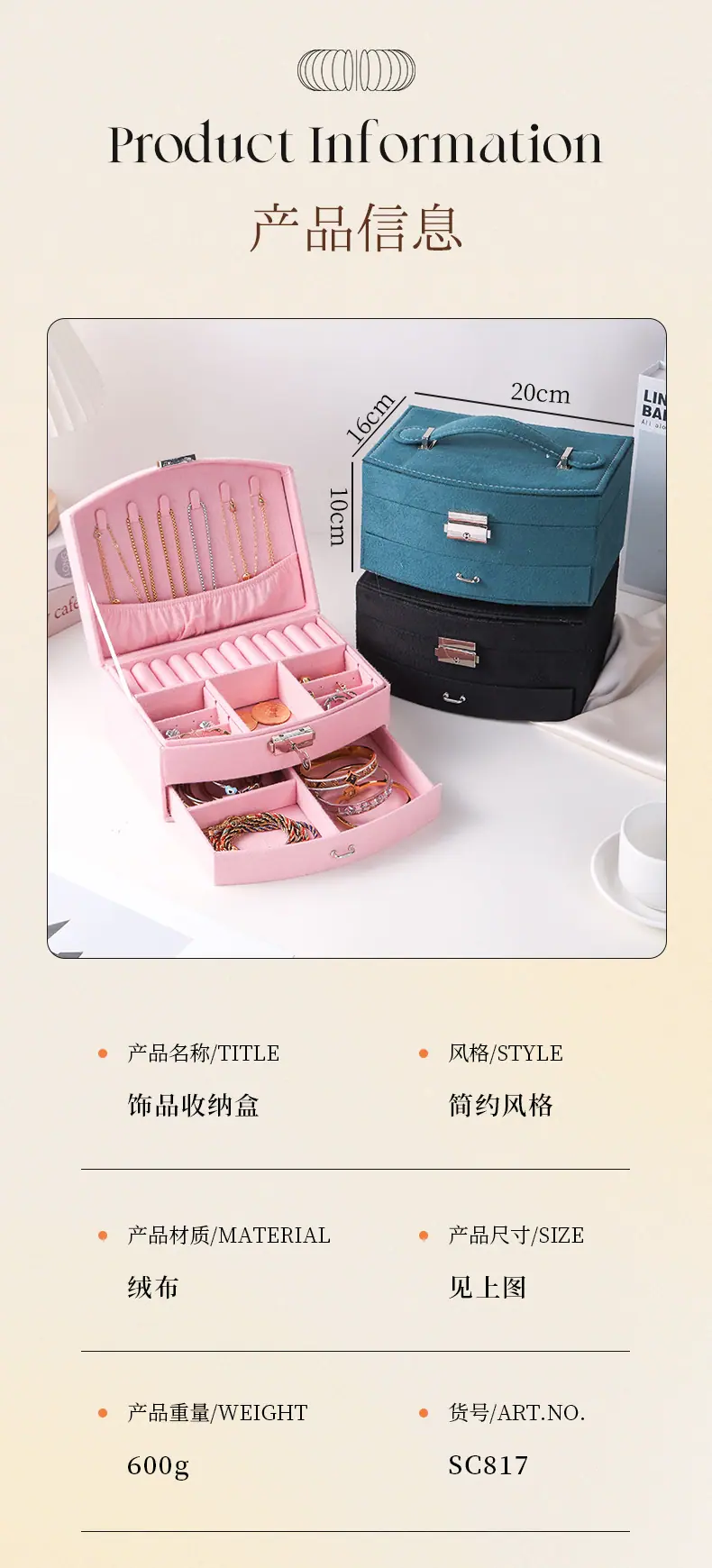 Caja de joyería de terciopelo multicapa transfronteriza, caja de almacenamiento tipo cajón, caja de joyería para anillos y aretes, caja de joyería de almacenamiento de gran capacidad