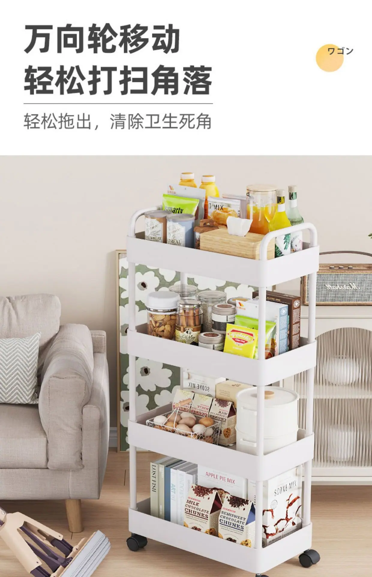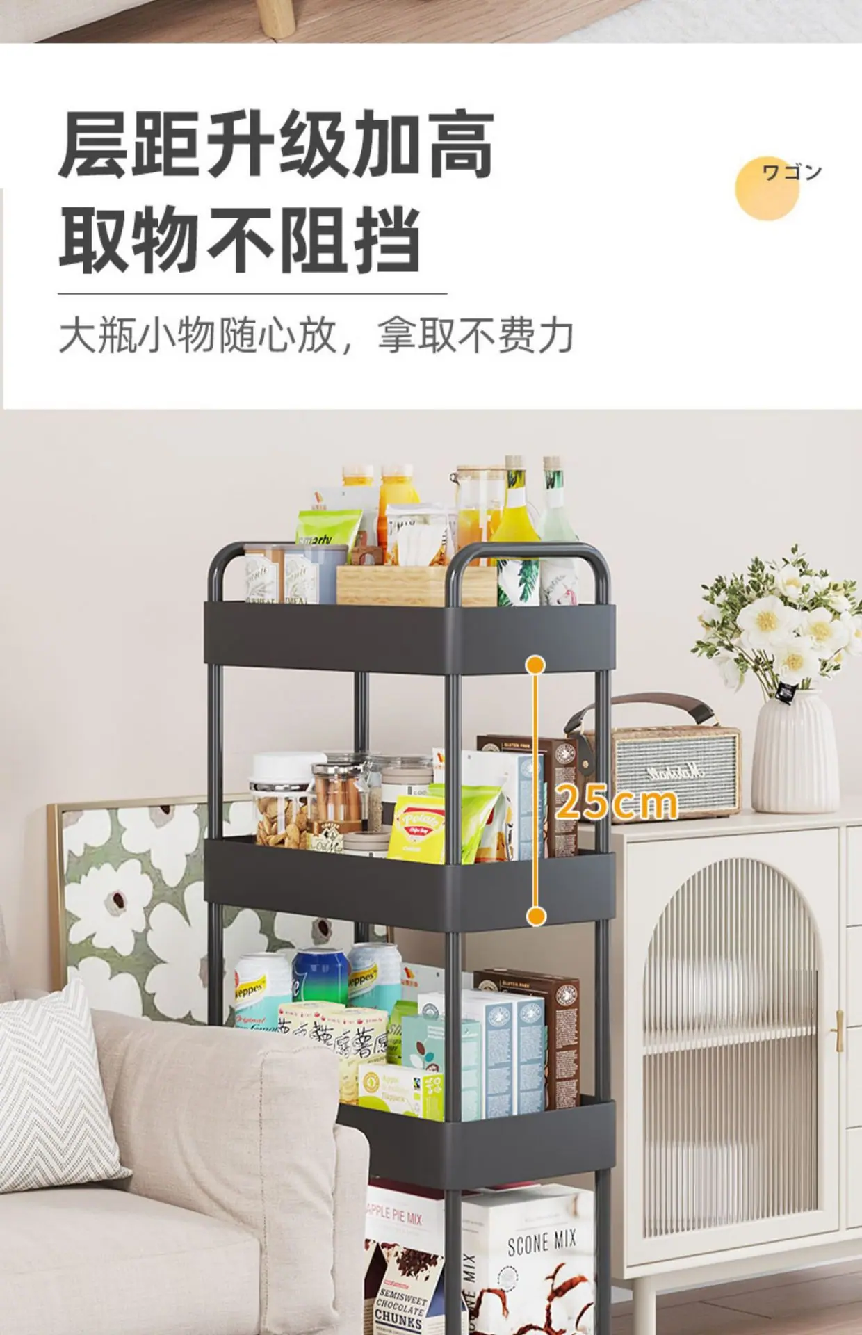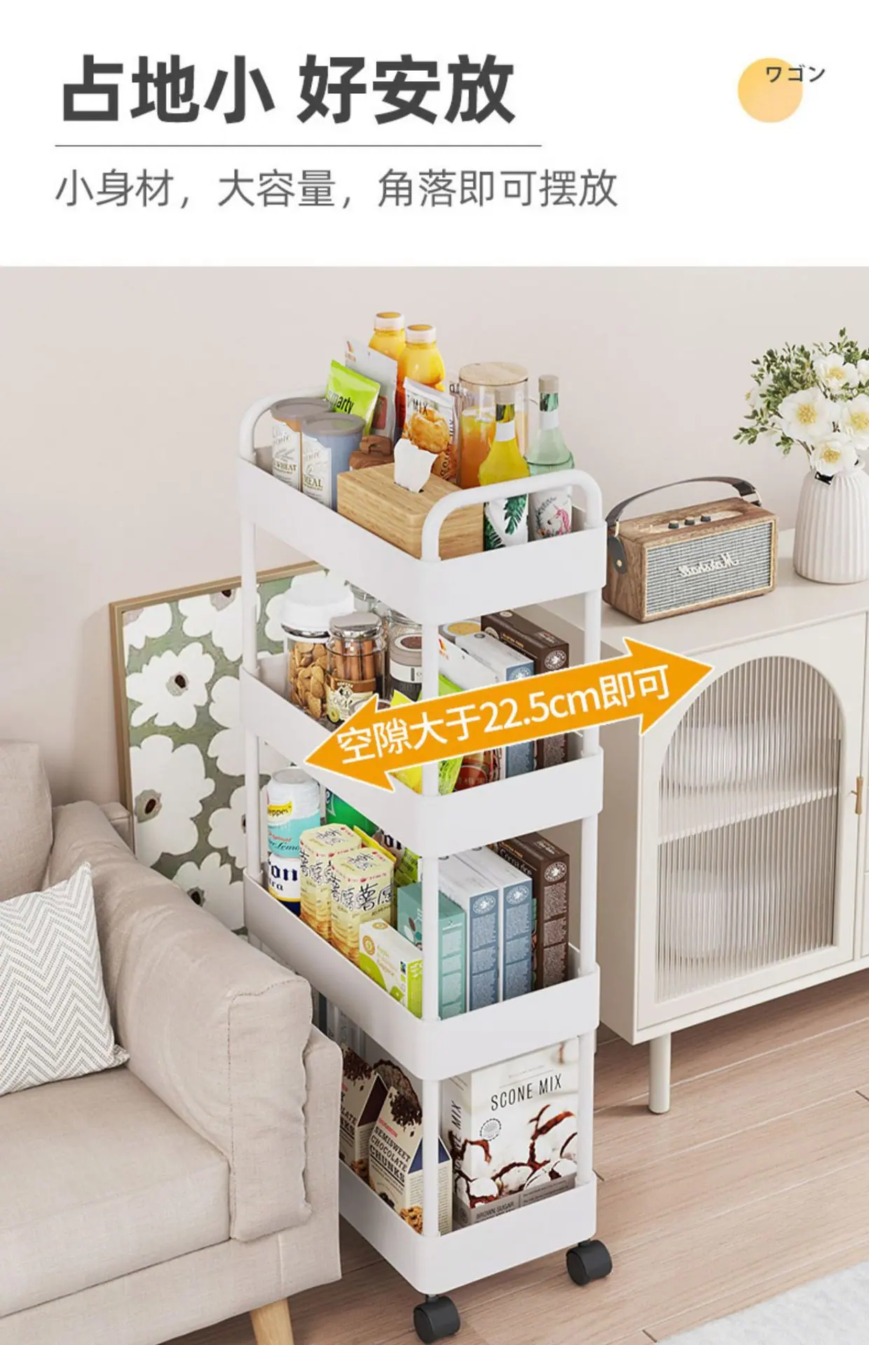 Carro pequeño de piso multicapa para cocina, estante móvil, estante para refrigerios de cabecera de dormitorio, estante de almacenamiento para baño/inodoro
