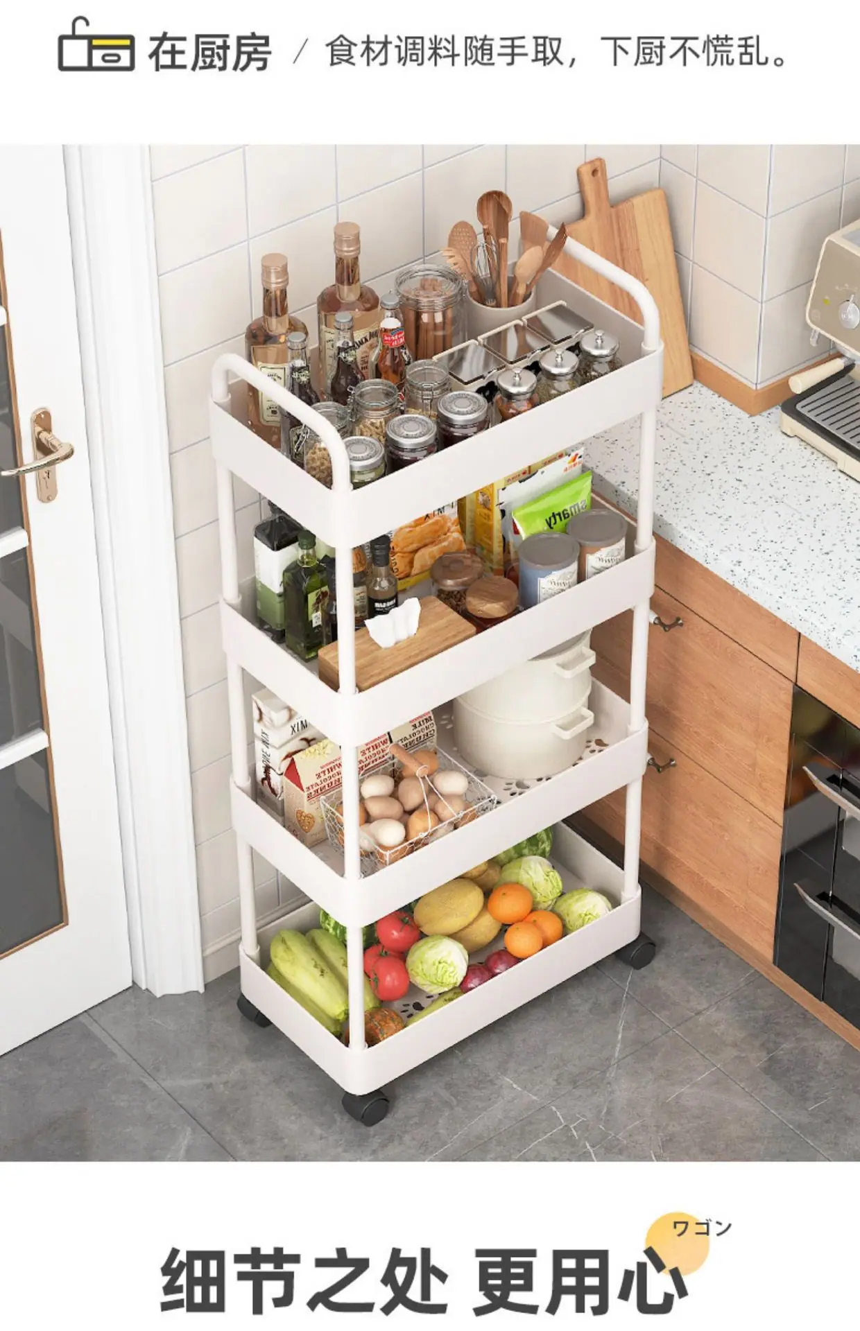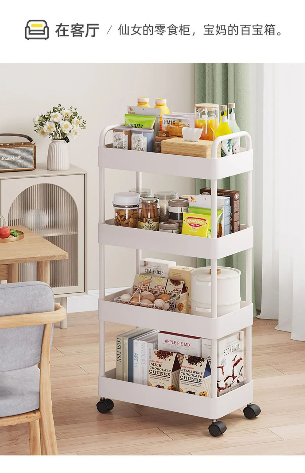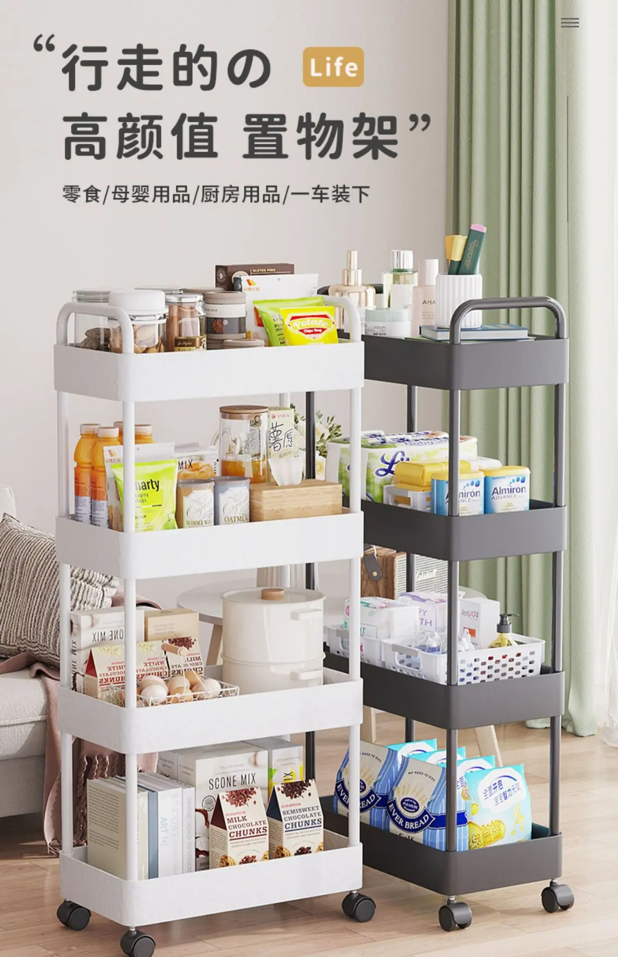Carro pequeño de piso multicapa para cocina, estante móvil, estante para refrigerios de cabecera de dormitorio, estante de almacenamiento para baño/inodoro