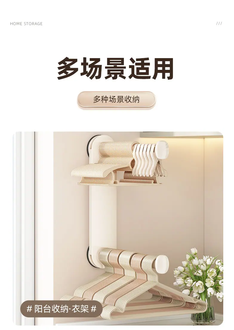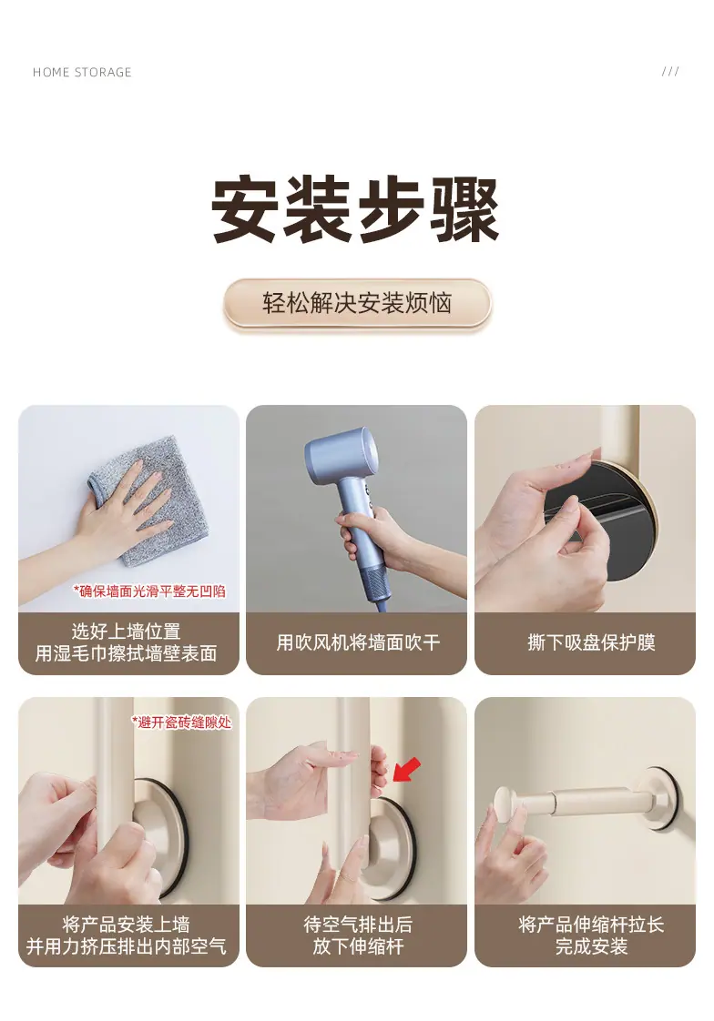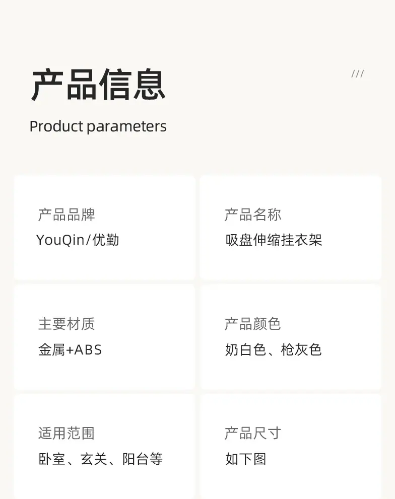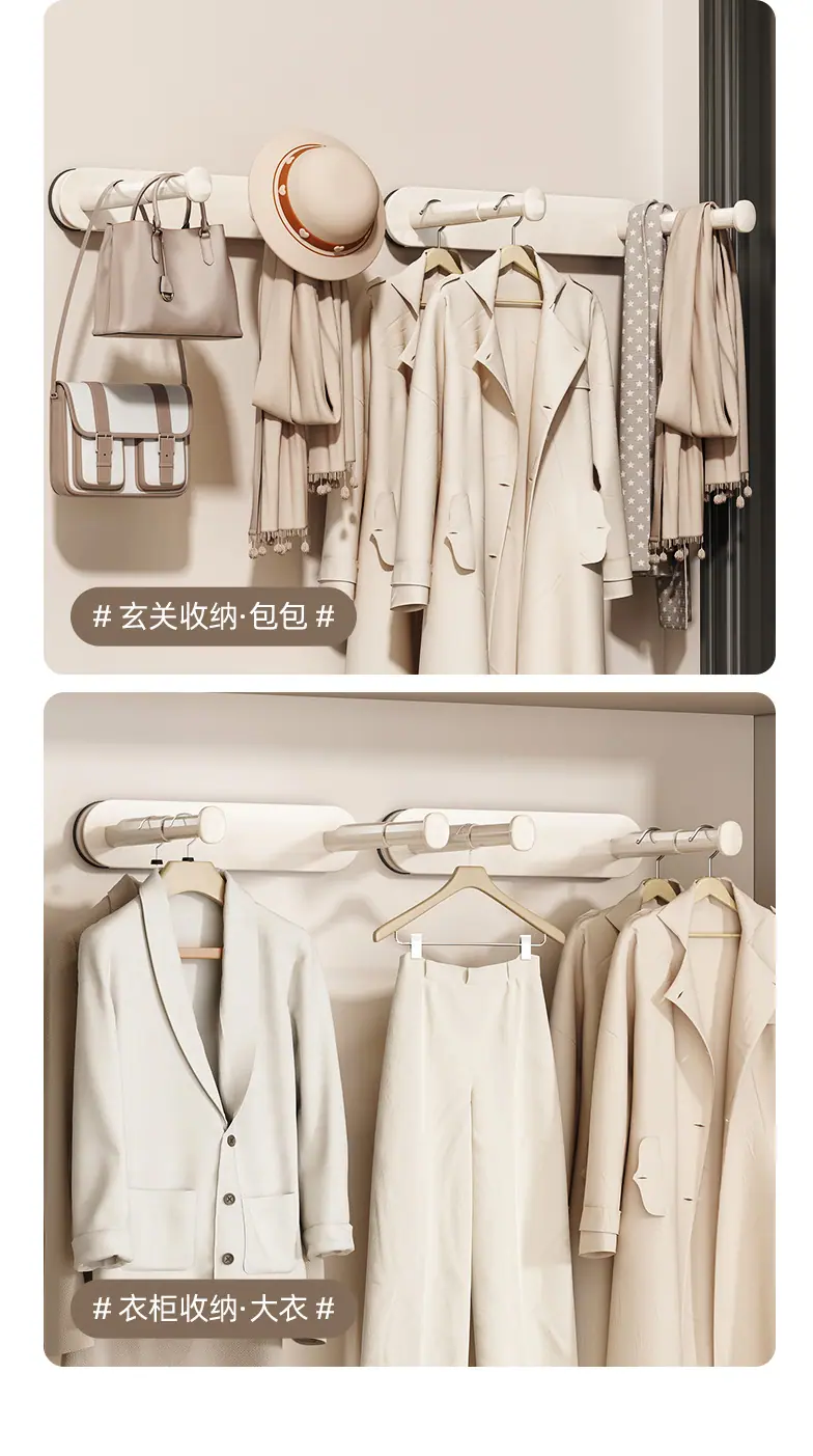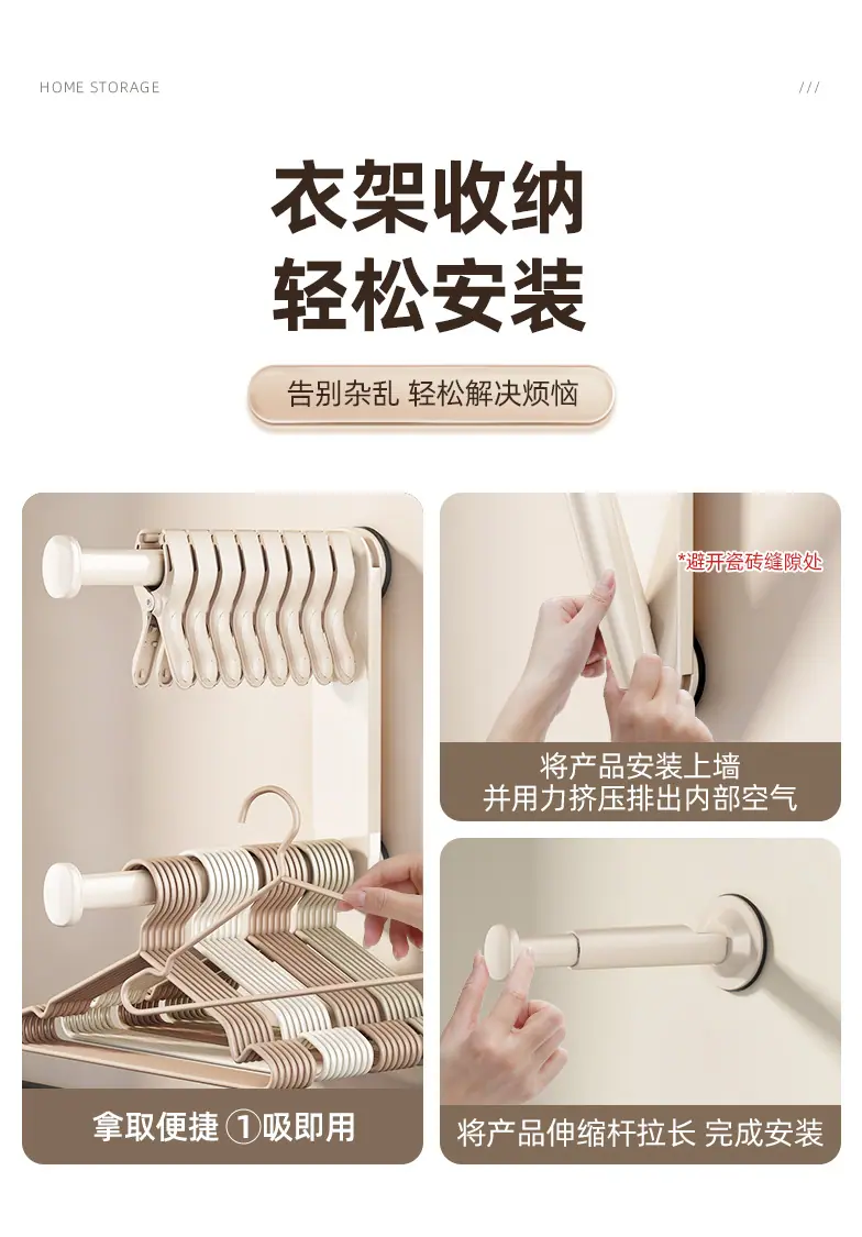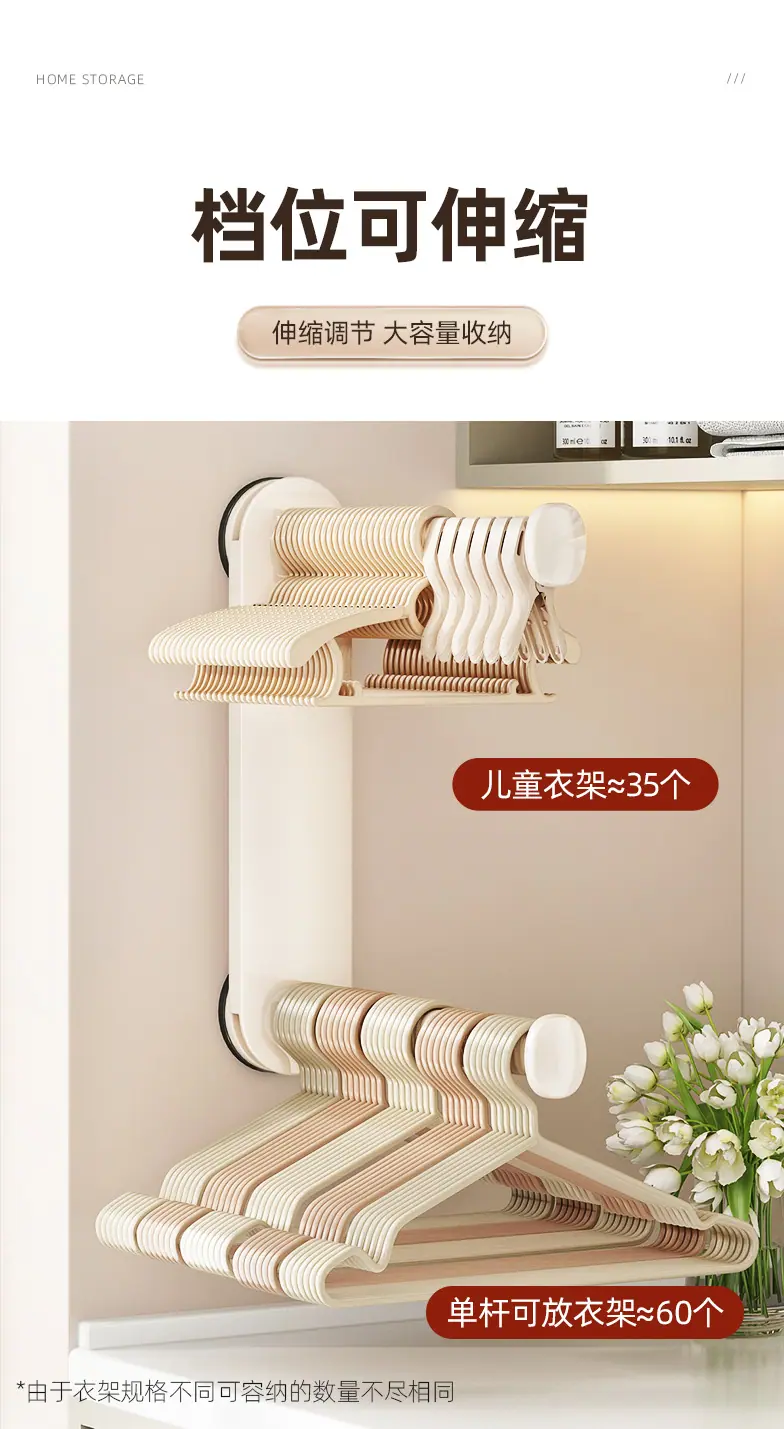 [milk white] suction cup clothes hanger storage rack (1 pack double rod telescopic)
