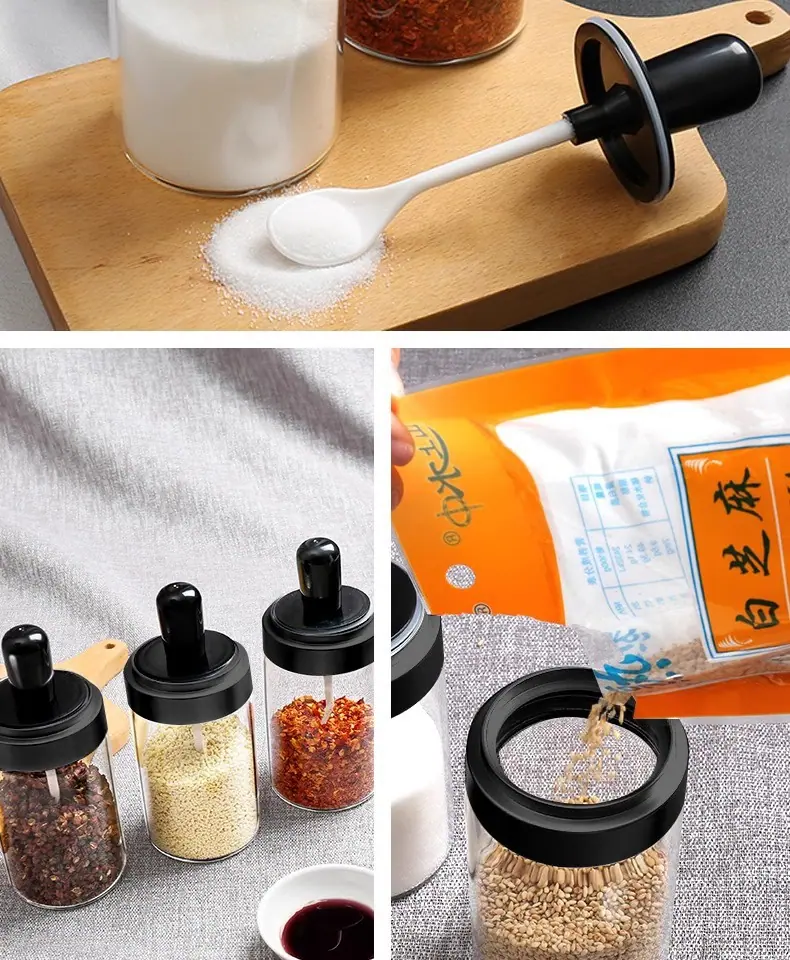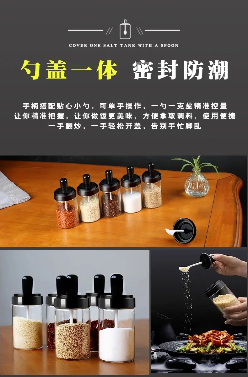 Tarros para Condimentos Caja para Especias de Cocina Juego Combinado Estilo Nuevo 2025 Sellado a Prueba de Humedad Vidrio Condimento Especias Caja Salero
