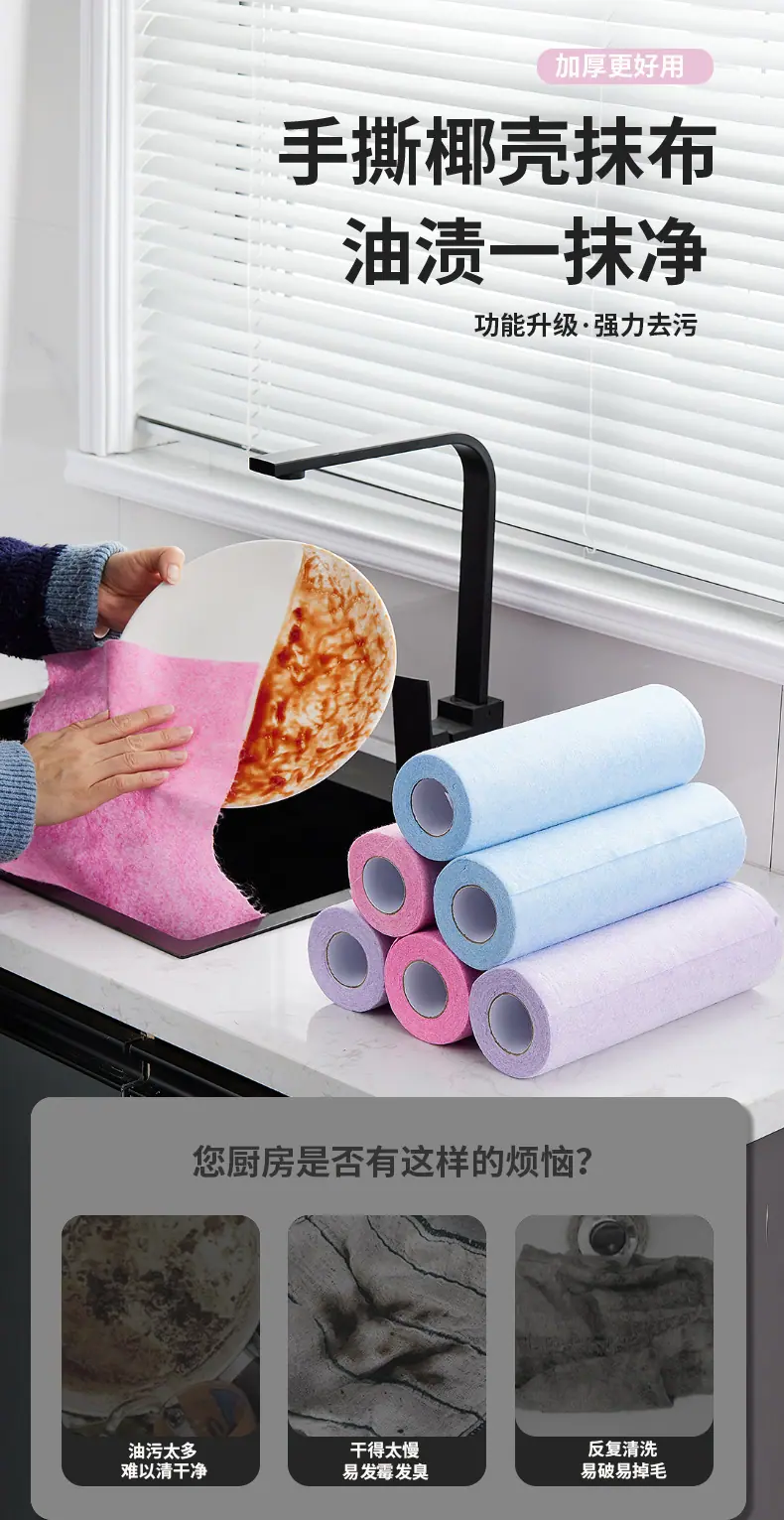 Trapo Perezoso de Uso Diario para el Hogar, Desechable, Rollo de Tela de Cáscara de Coco, Cocina Absorbente, No Adherente al Aceite, Estropajo, Artículo para el Hogar