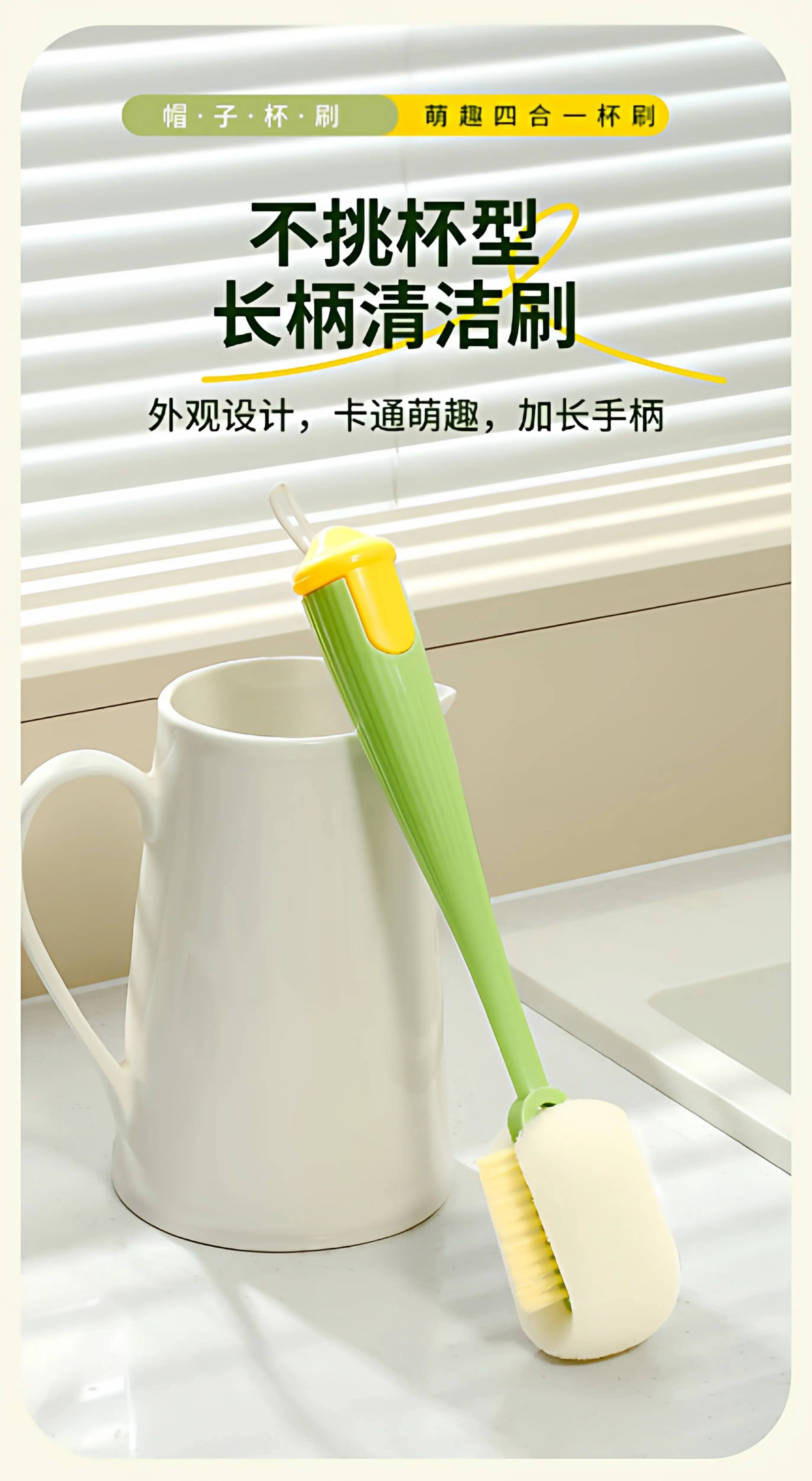 Cepillo para taza, artefacto para limpiar tazas de agua, mango largo multifuncional cuatro en uno, cepillo para taza aislada, cepillo de limpieza de esponja para quitar manchas domésticas