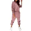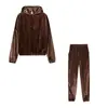 2023 Otoño e Invierno Nuevo Amazon Traje Casual de Manga Larga con Capucha de Terciopelo Dorado de Color Puro para Mujer