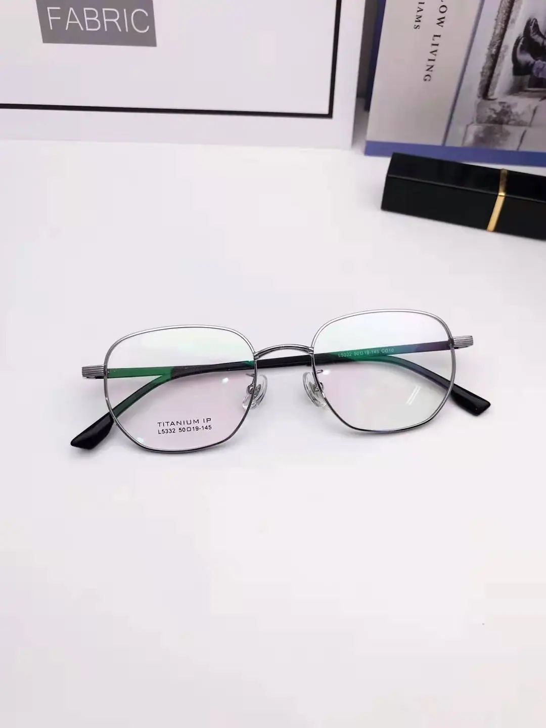 Venta al por mayor Nuevo estilo gafas retro borla transparente Cuadrado montura completa cara ovalada mujer negro titanio puro montura de gafas