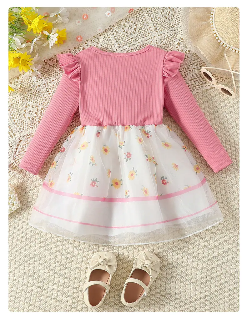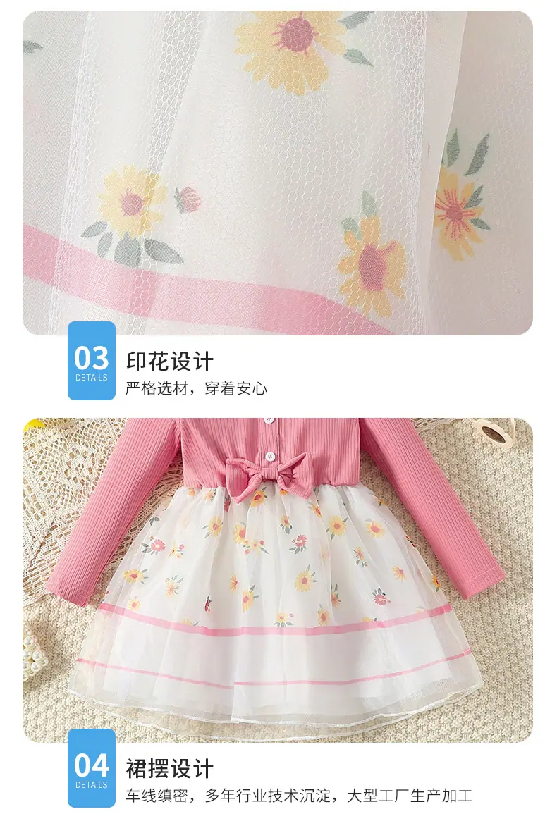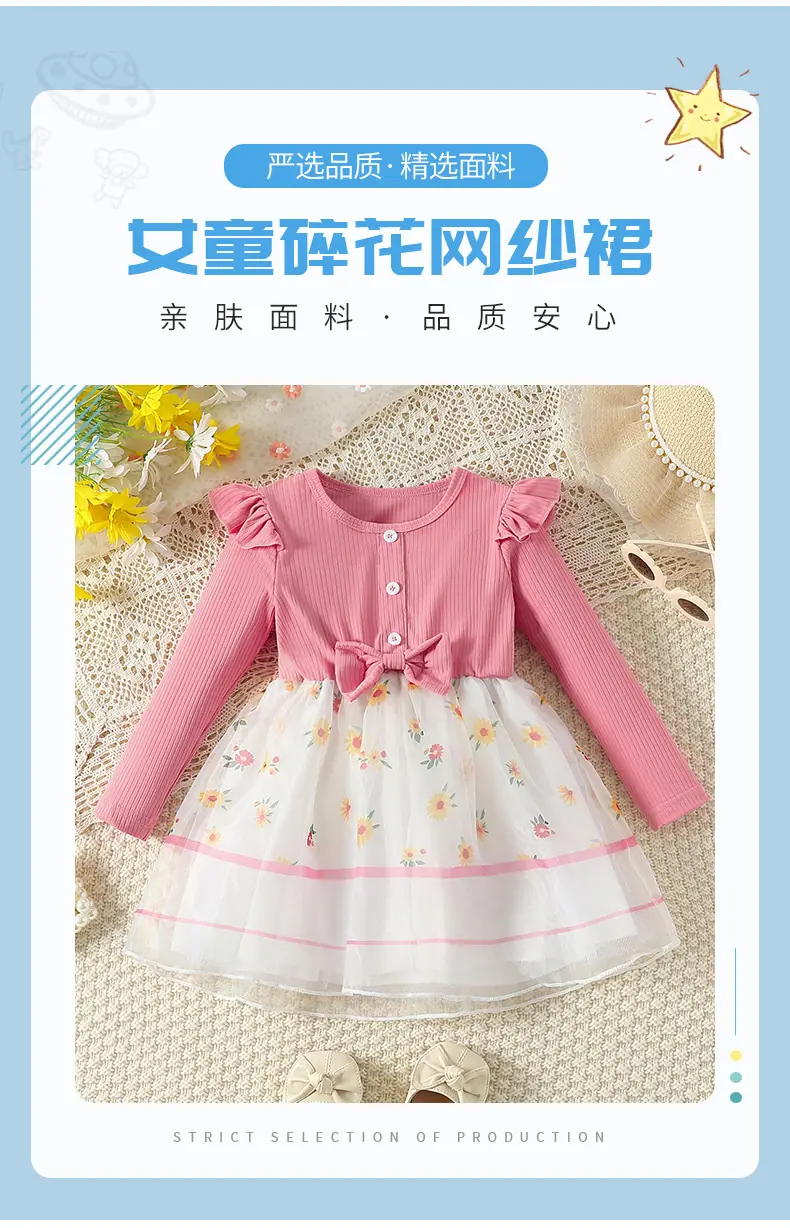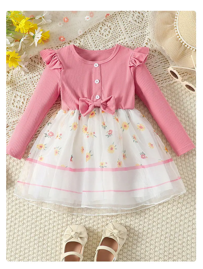 Compra Vestido Nuevo de Primavera y Otoño para Niños Vestido de Princesa Tejido con Lazo Moderno Floral Falda de Malla Niñas Bebé Venta al por Mayor al por mayor en Joom.pro