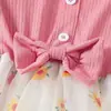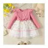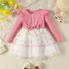 Vestido Nuevo de Primavera y Otoño para Niños Vestido de Princesa Tejido con Lazo Moderno Floral Falda de Malla Niñas Bebé Venta al por Mayor