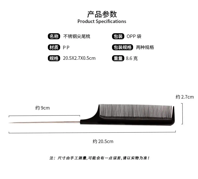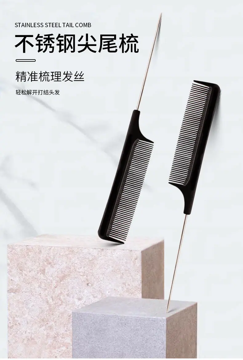 Compra Peine nuevo para peluquería con cola puntiaguda, peine de plástico, peluquería, aguja de acero, peine de cola puntiaguda, material pp, diente denso, en stock, al por mayor al por mayor en Joom.pro