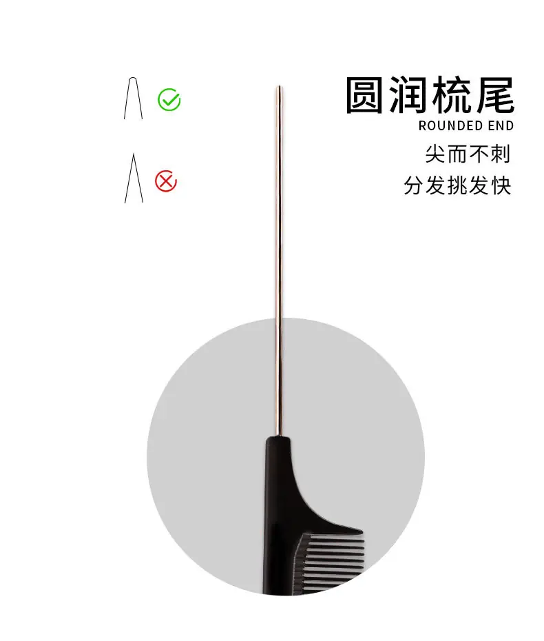Black steel needle tip tail comb, Mixed color steel needle tip tail comb