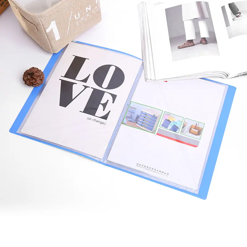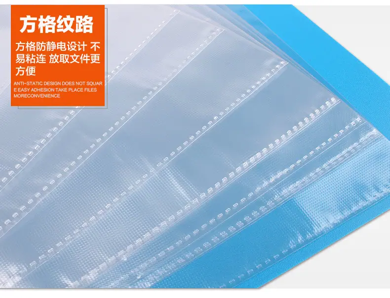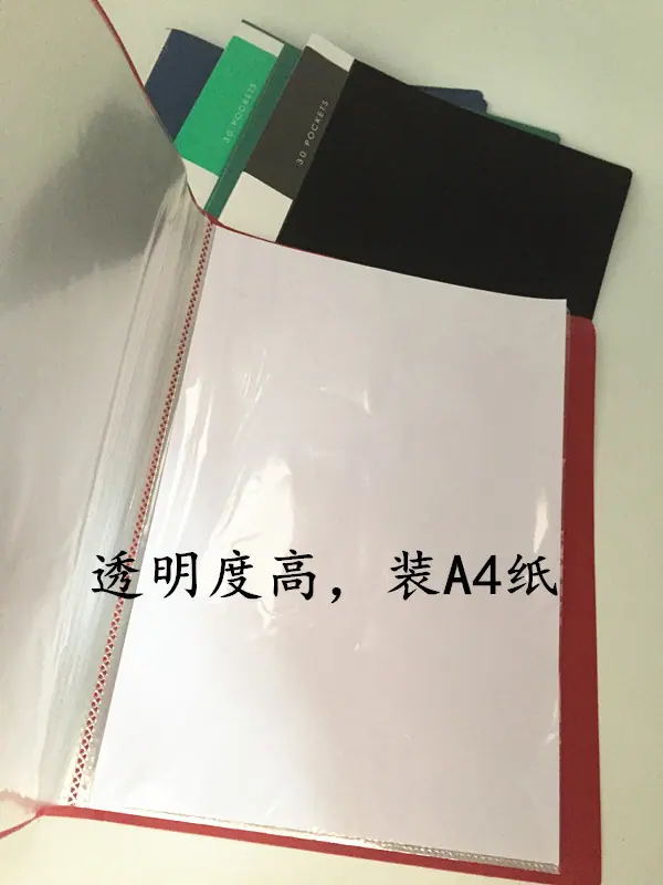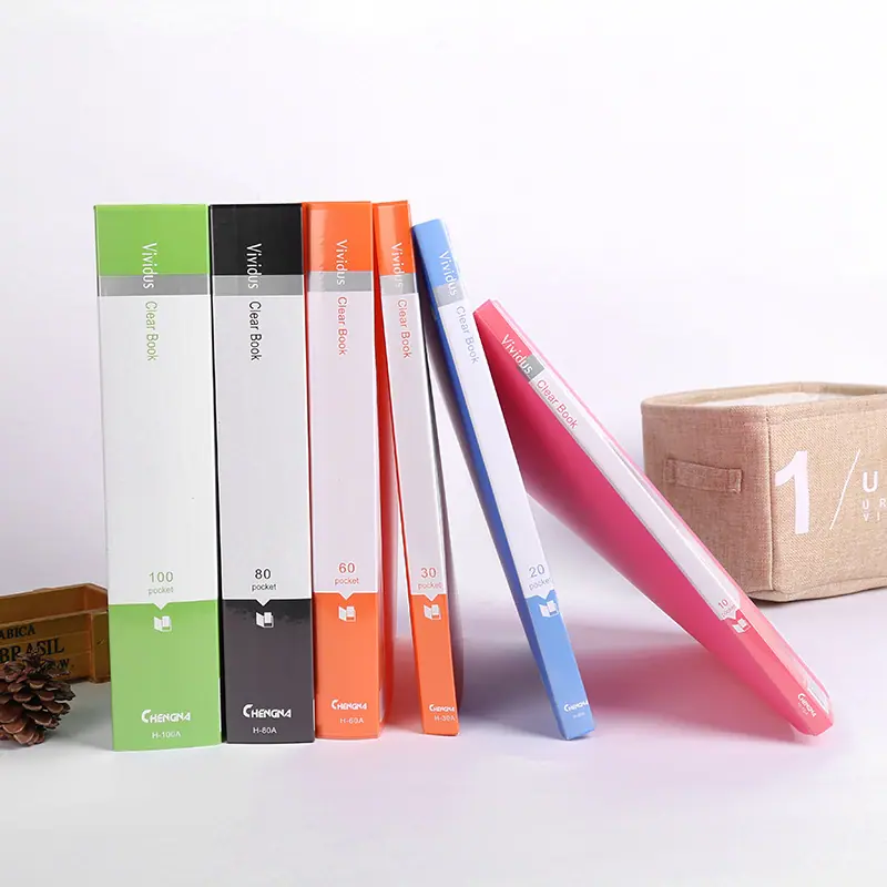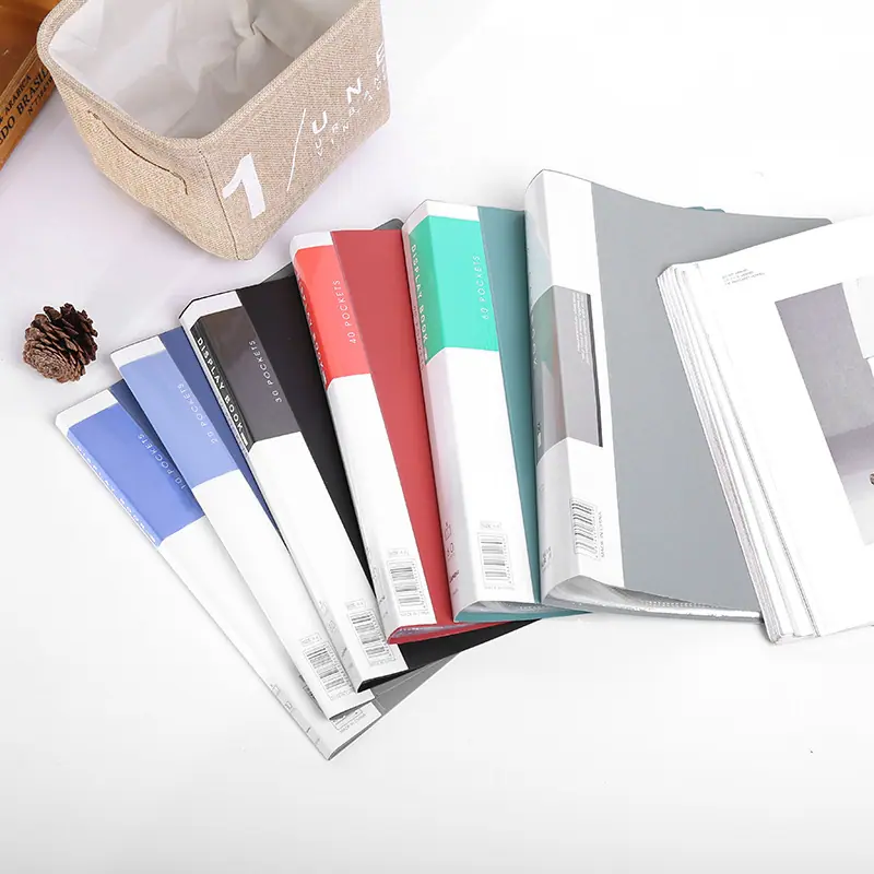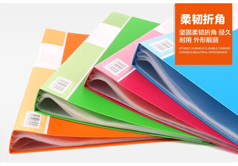 Carpeta para documentos A4, que contiene fundas de plástico transparente blanco, colores frescos,