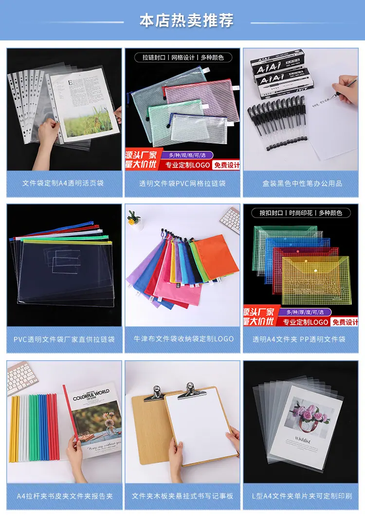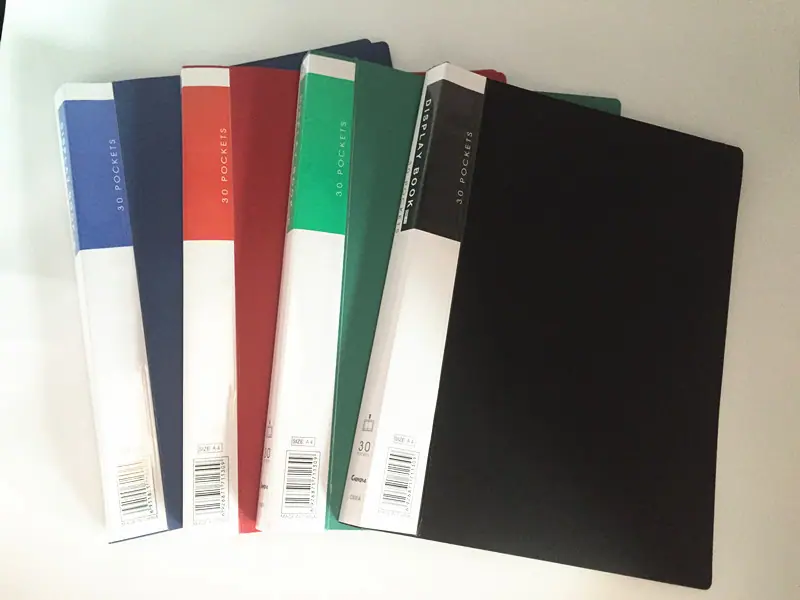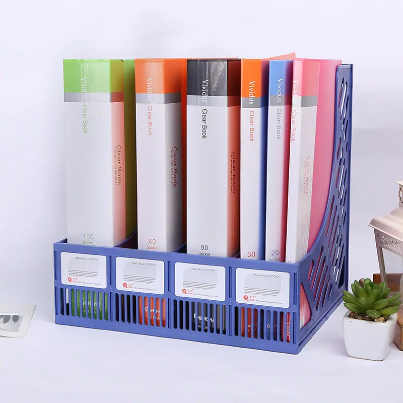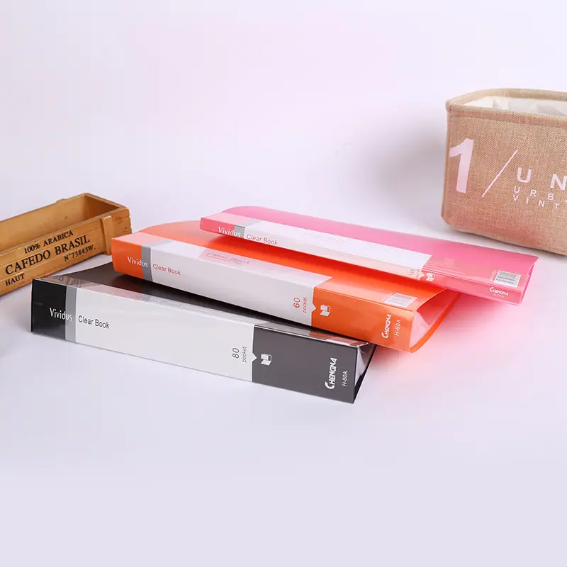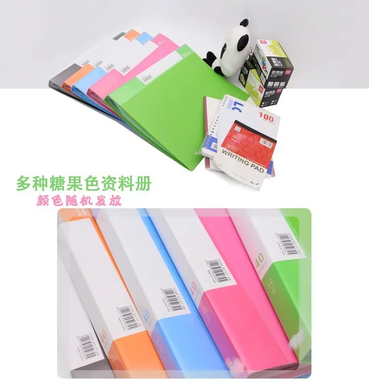 Carpeta para documentos A4, que contiene fundas de plástico transparente blanco, colores frescos,