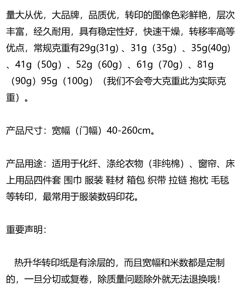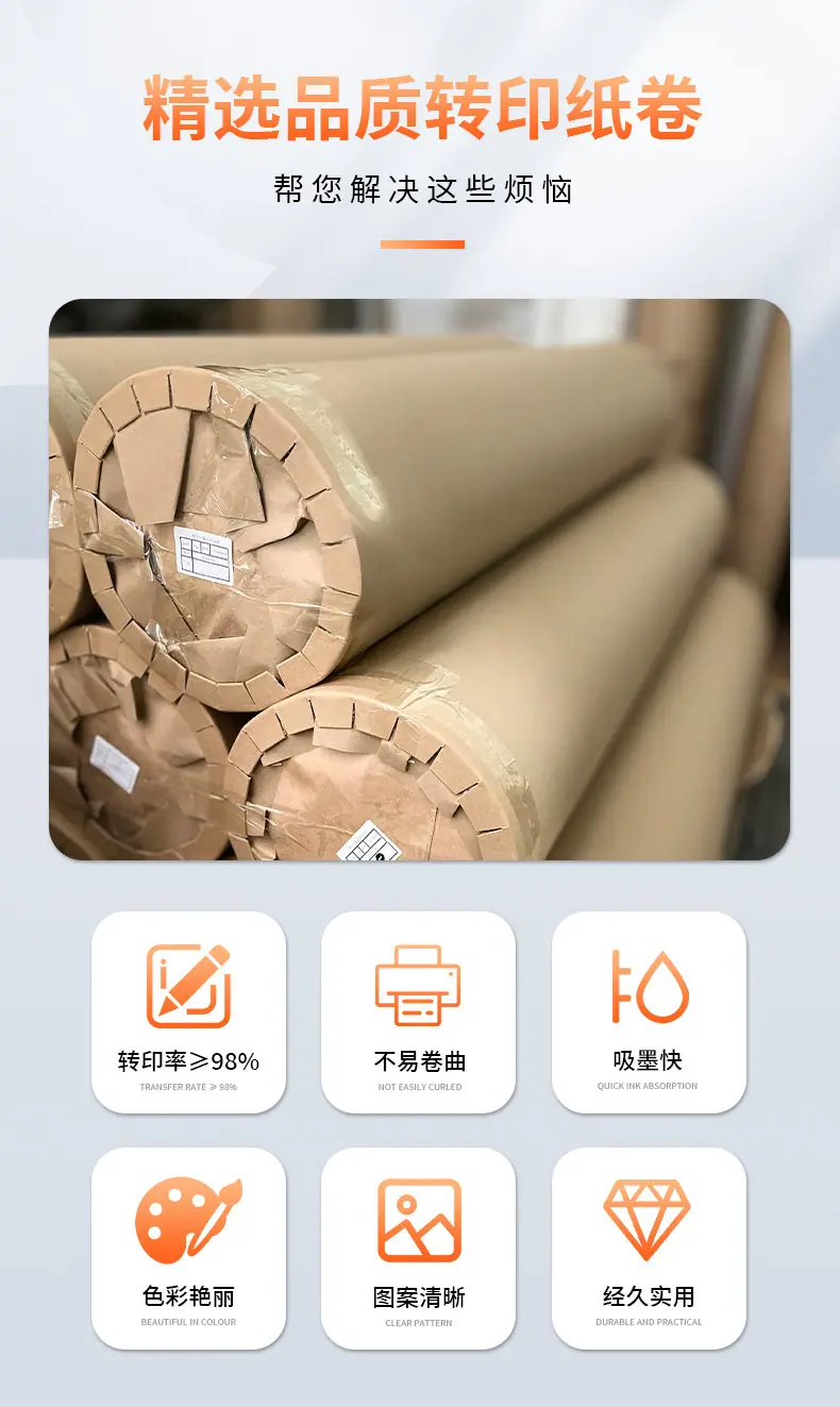 Suministro Directo del Fabricante Papel de Transferencia de Calor 31 Gramos-100 Gramos Papel de Impresión por Transferencia de Calor Consumibles de Sublimación Rollo Papel de Secado Rápido