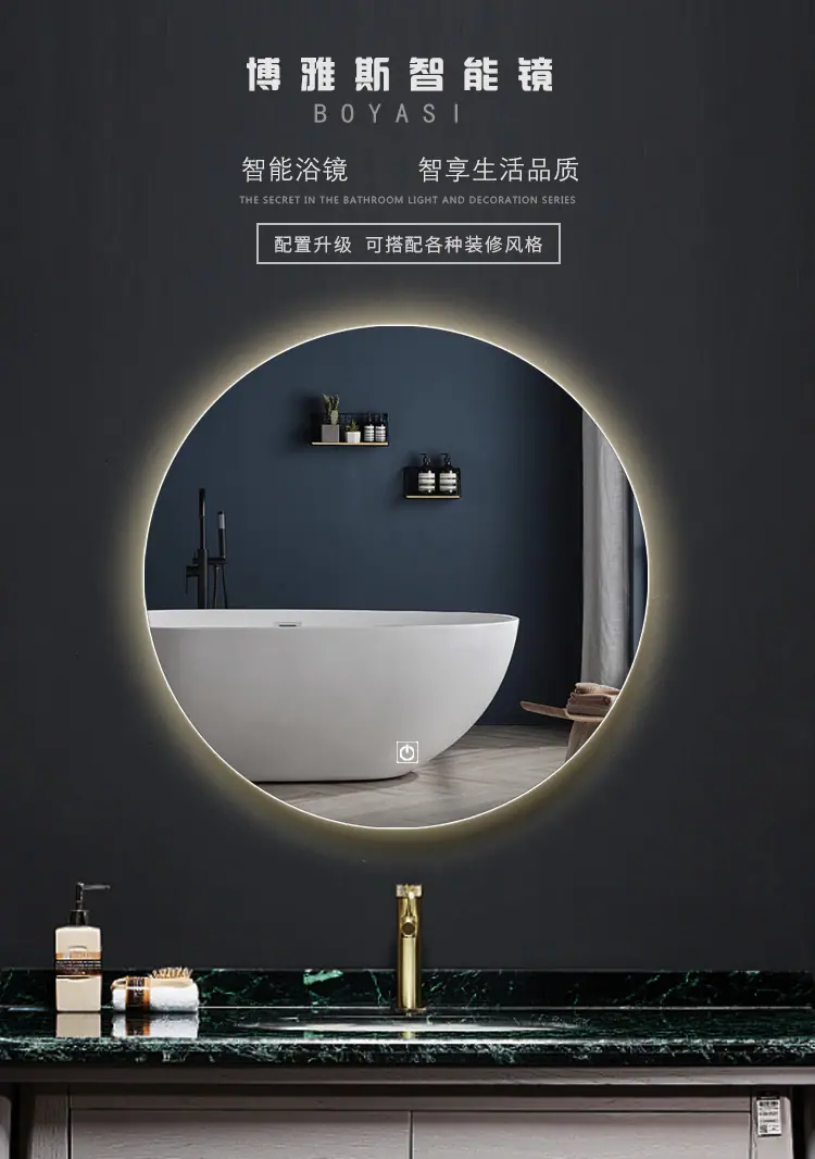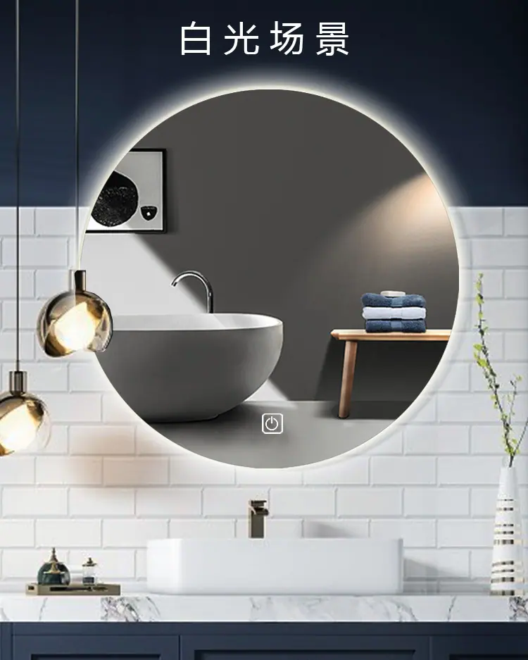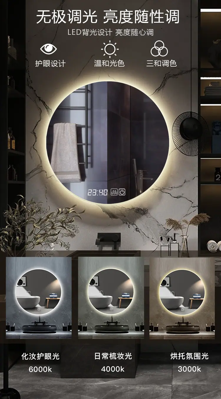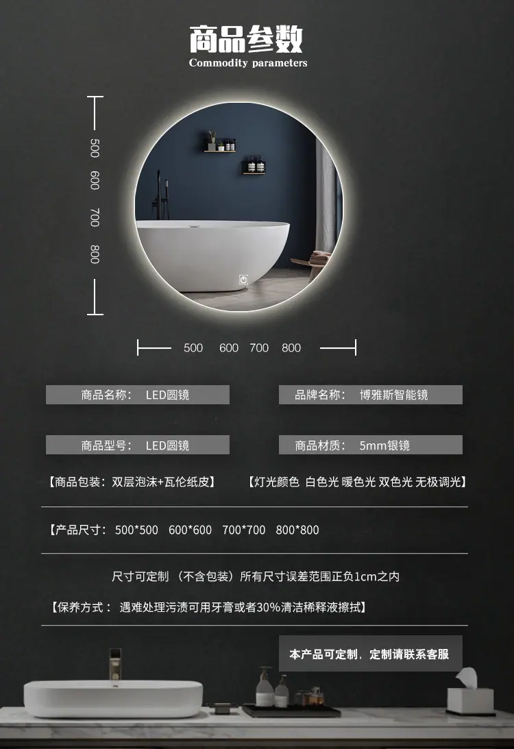 Compra Espejo redondo de pared para baño inteligente con luz LED, pantalla táctil, inducción, antivaho, luminoso, espejo de pared. al por mayor en Joom.pro