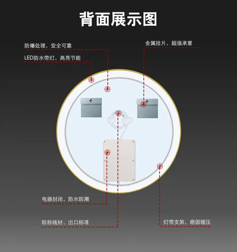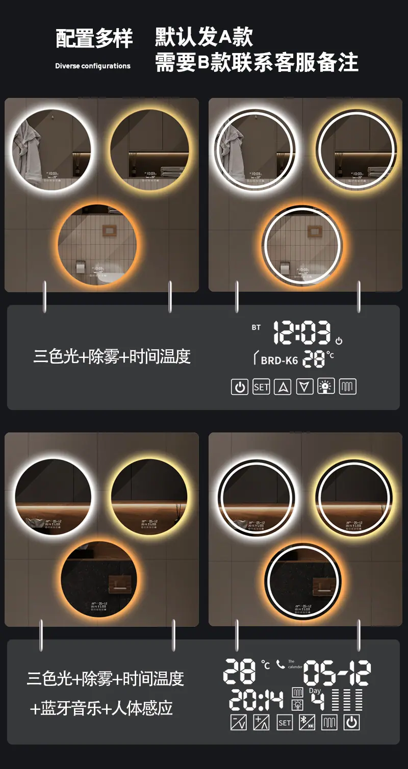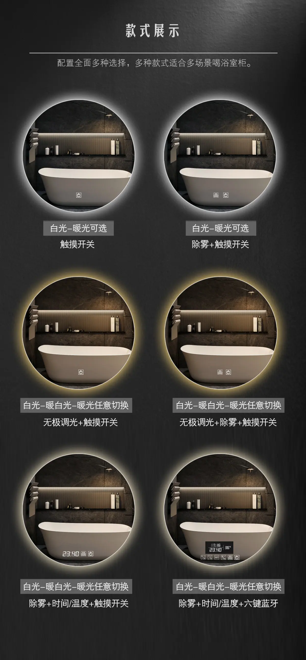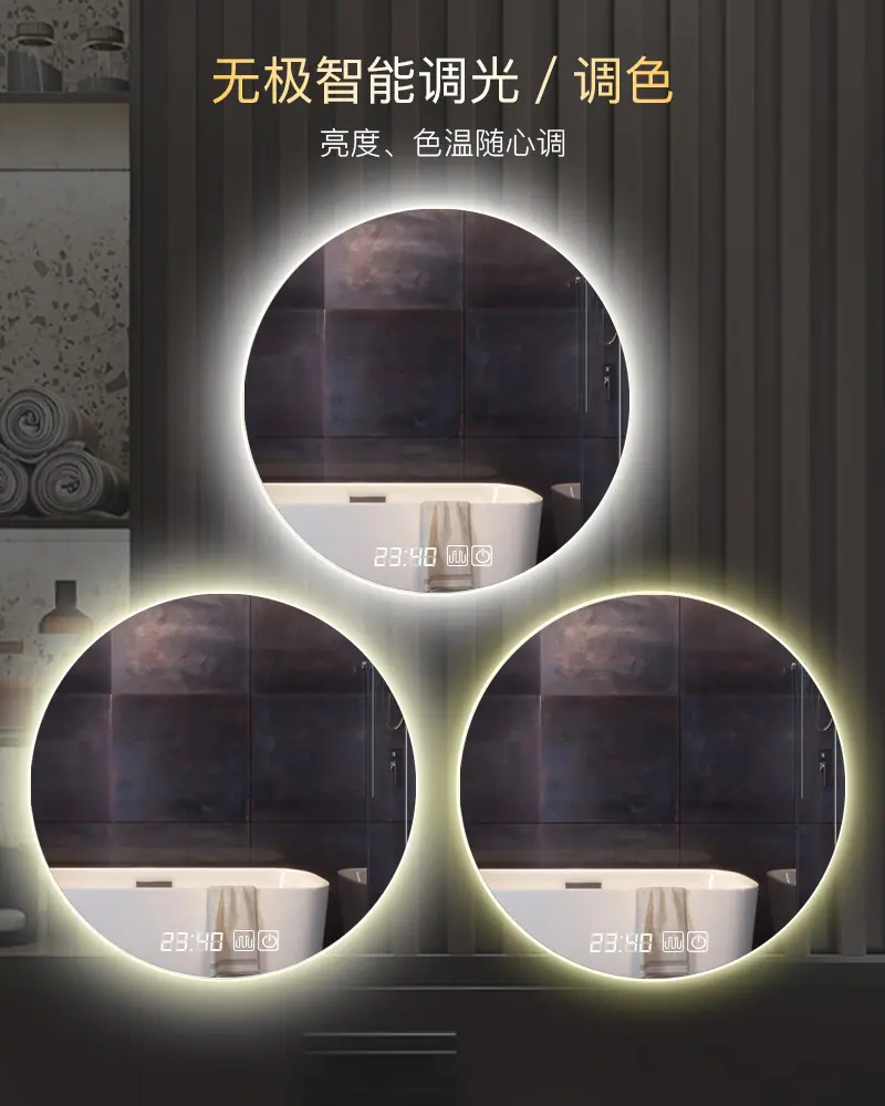 Compra Espejo redondo de pared para baño inteligente con luz LED, pantalla táctil, inducción, antivaho, luminoso, espejo de pared. al por mayor en Joom.pro