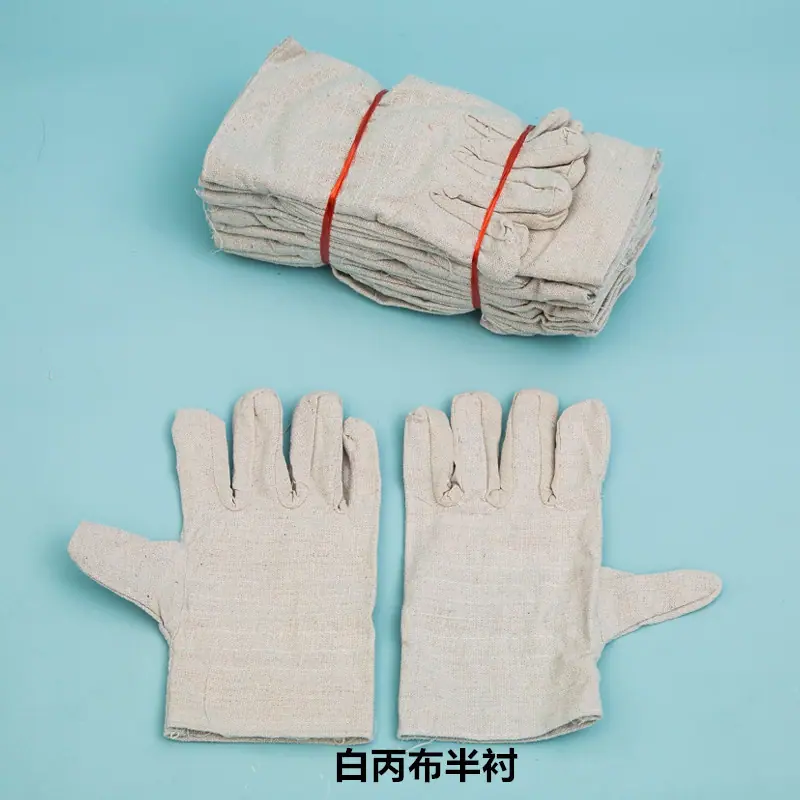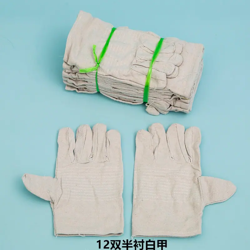 Guantes de lona 24 hilos totalmente forrados blancos armadura suministros de protección laboral guantes de trabajo para soldadura mecánica al por mayor guantes de protección laboral