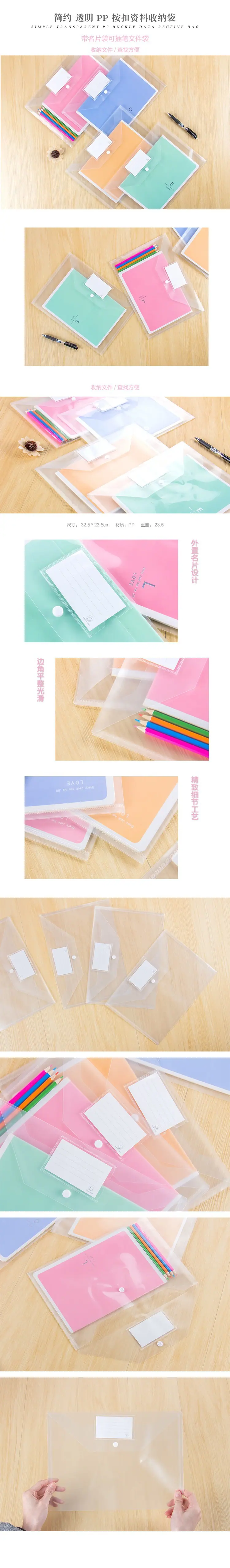Bolsa sencilla transparente de PP con botón a presión para guardar documentos ¡Superventas del fabricante!