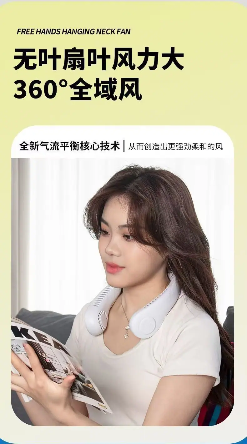 Ventilador Mini Portátil Silencioso Sin Aspas Recargable por USB para Colgar del Cuello 2025 para Estudiantes, Portátil con Viento Fuerte y Bajo Ruido