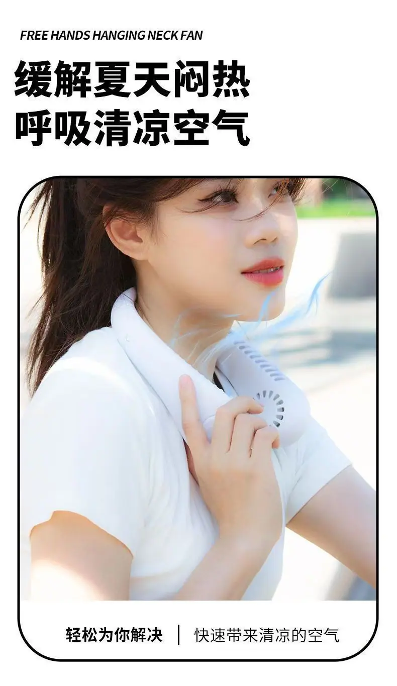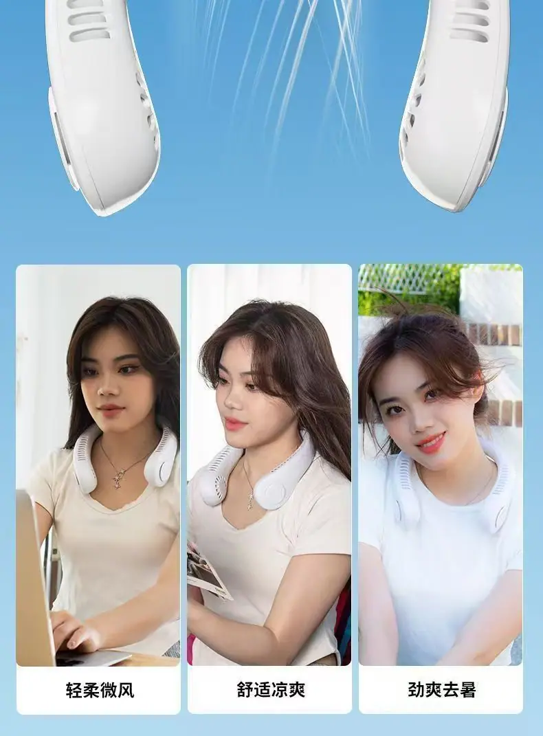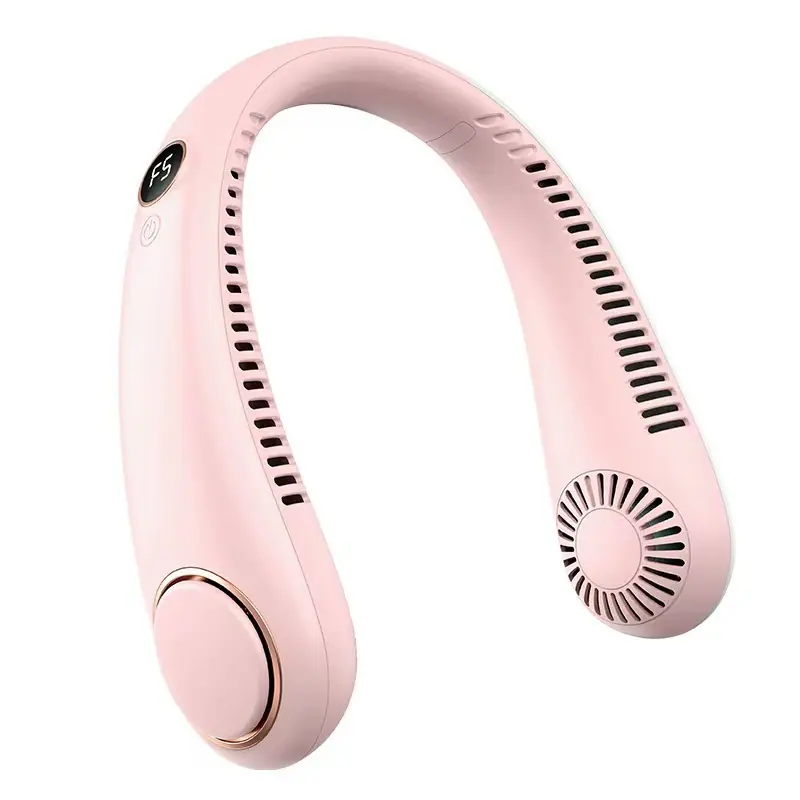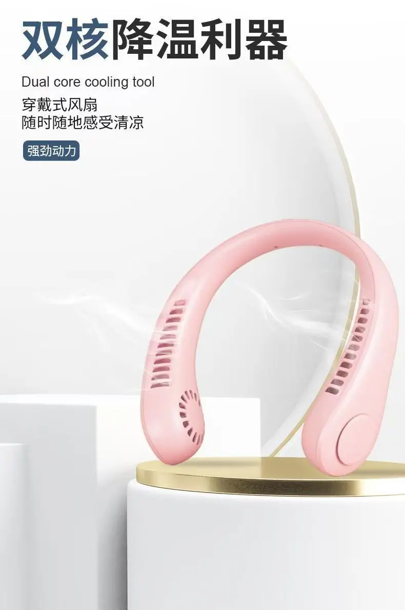 Pink hanging neck electric fan digital display, Green five-hole fan, Handheld folding white small fan, Hanger ...