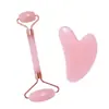 Set Masajeador Rodillo Cuarzo Rosa No Jade Palo de Masaje de Doble Cabeza Tabla de Belleza Facial Palo Manual de Doble Cabeza