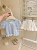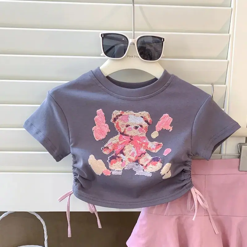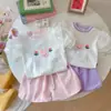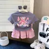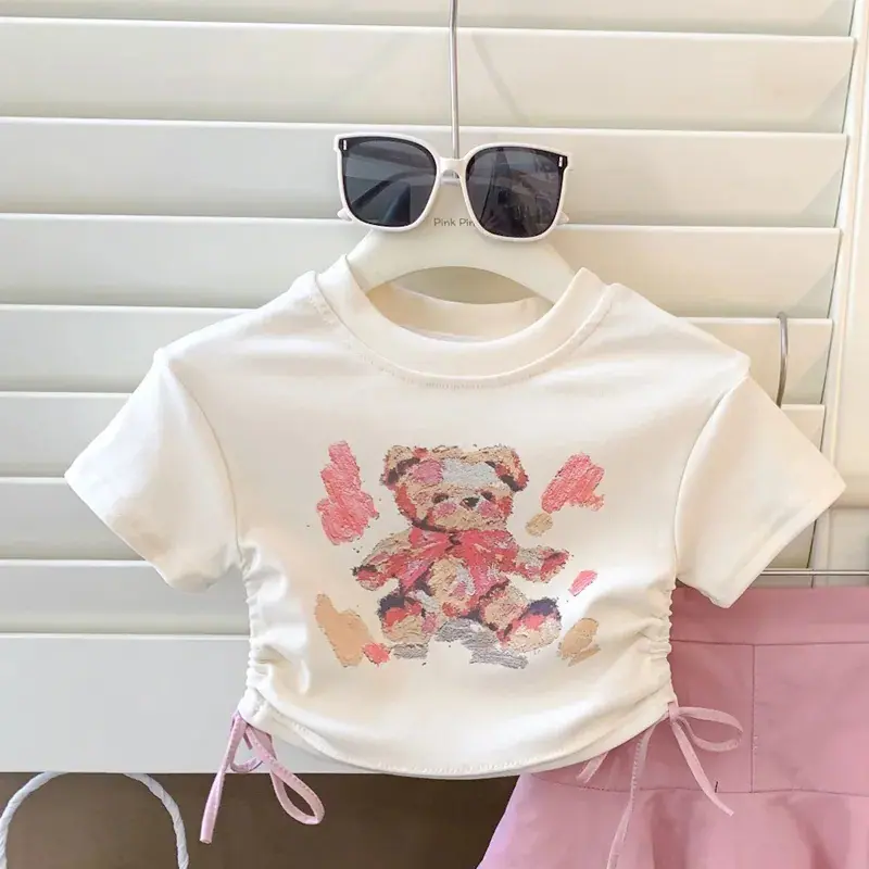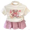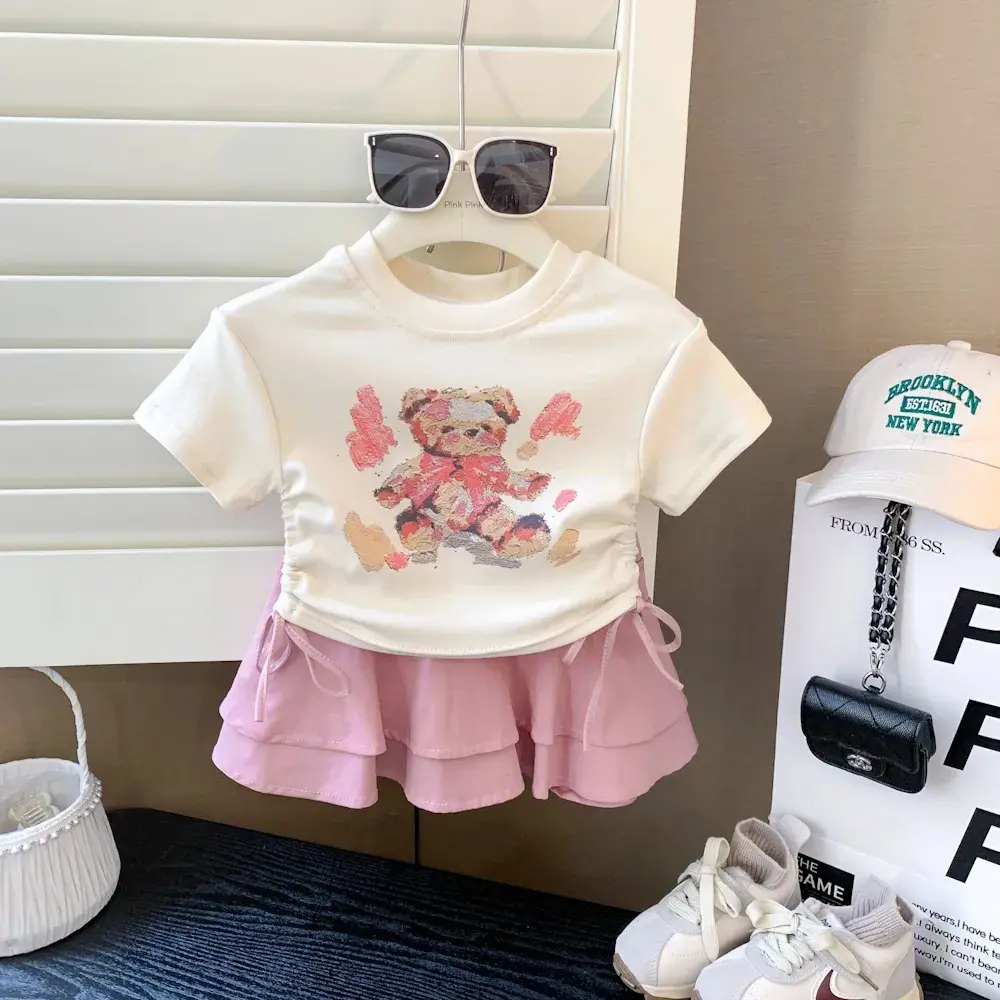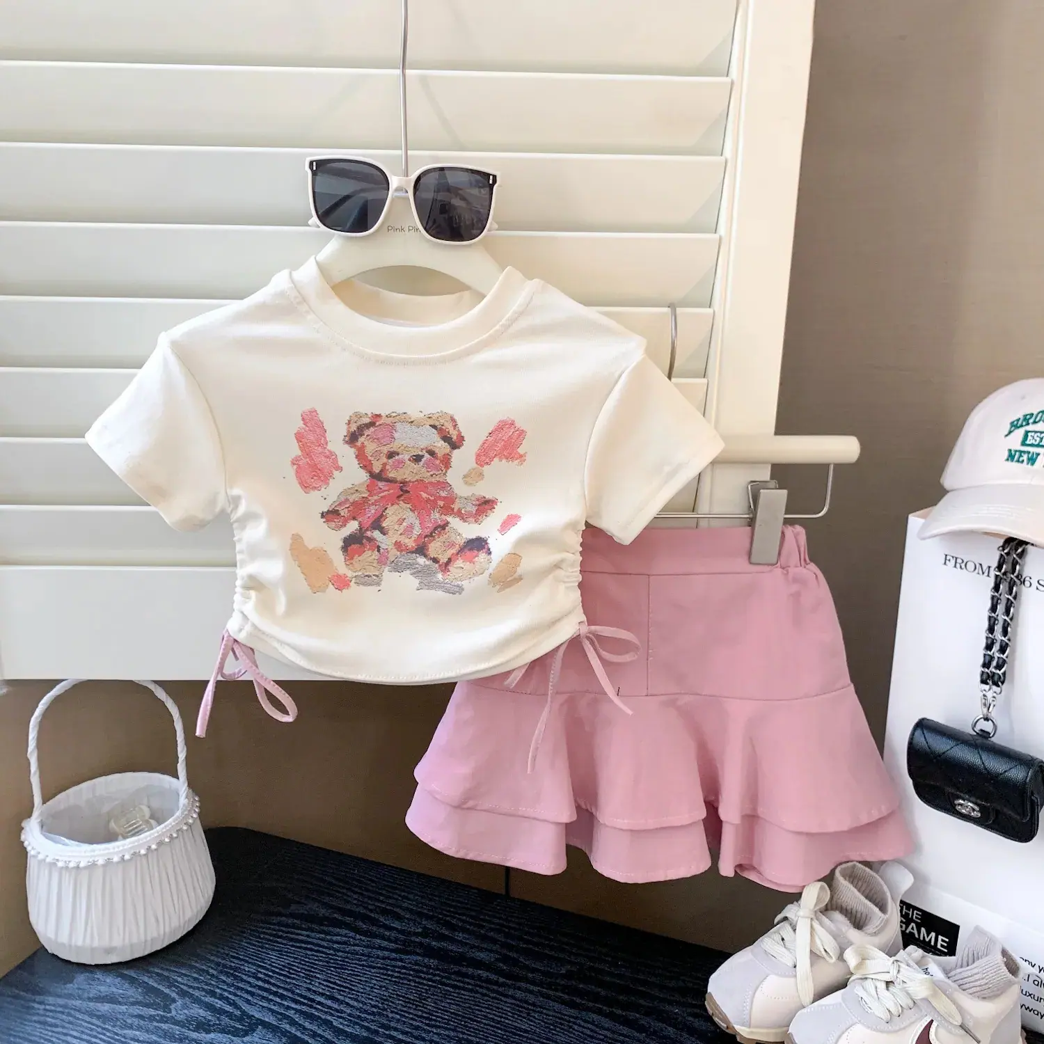 Conjunto Casual de Dibujos Animados para Niñas Estilo Verano 2025 Nueva Moda y Elegante Top de Manga Corta para Bebé y Falda Conjunto de Dos Piezas