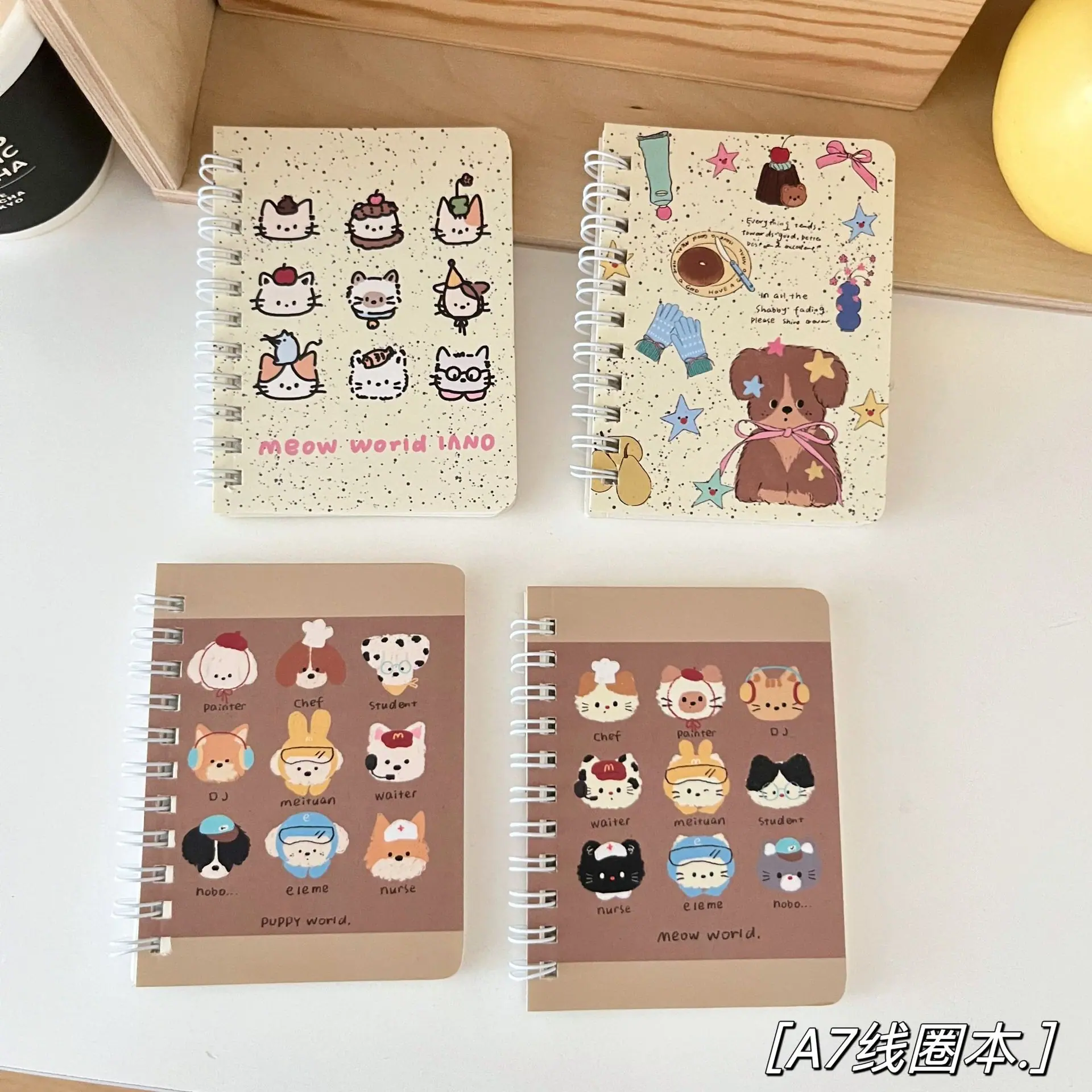 A7 spotted off-white kitten coil book, A7 spotted brown star puppy coil book, A7 brown dog typesetting coil bo...