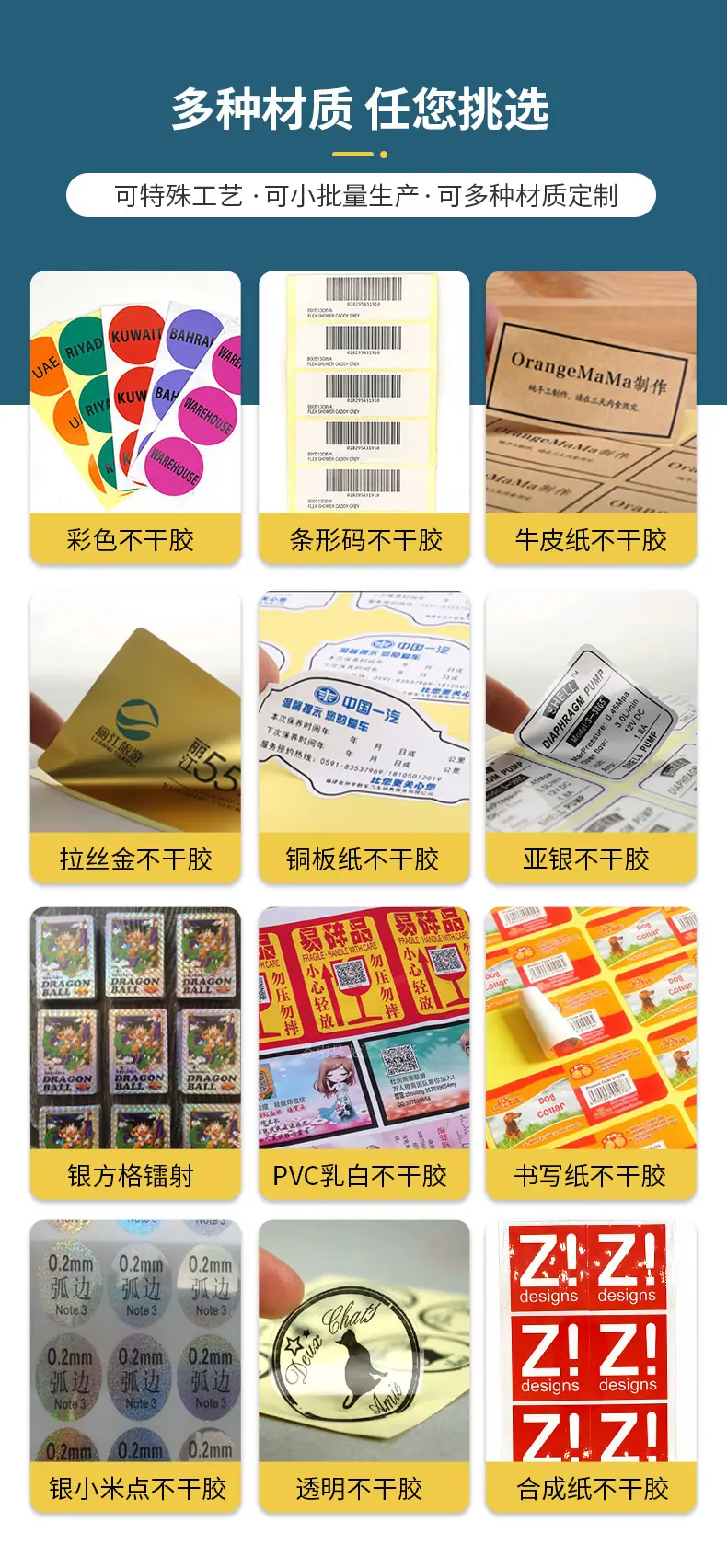 Lote pequeño venta directa removible papel estucado adhesivo etiqueta engomada sello adhesivo código bidimensional publicidad LOGO sello