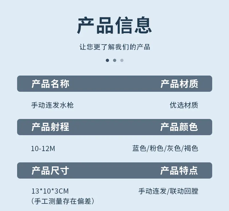 | [Dinosaurio] Pistola de Agua | 100 ml | azul, cian | Bolsa de polipropileno | 11.5x4x13.5 | 16.5x17.5 | 252 | 69*39*65 |