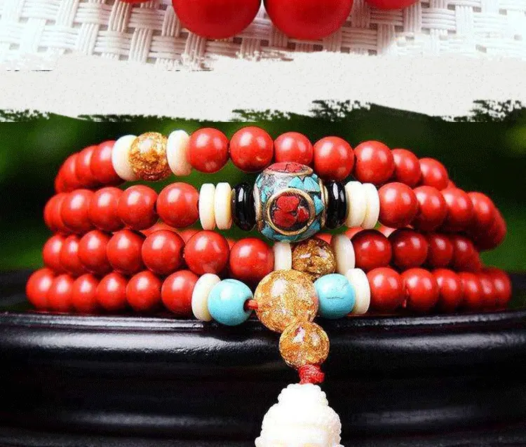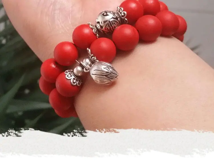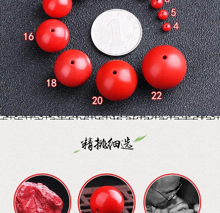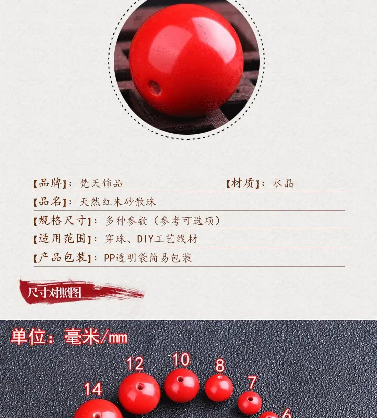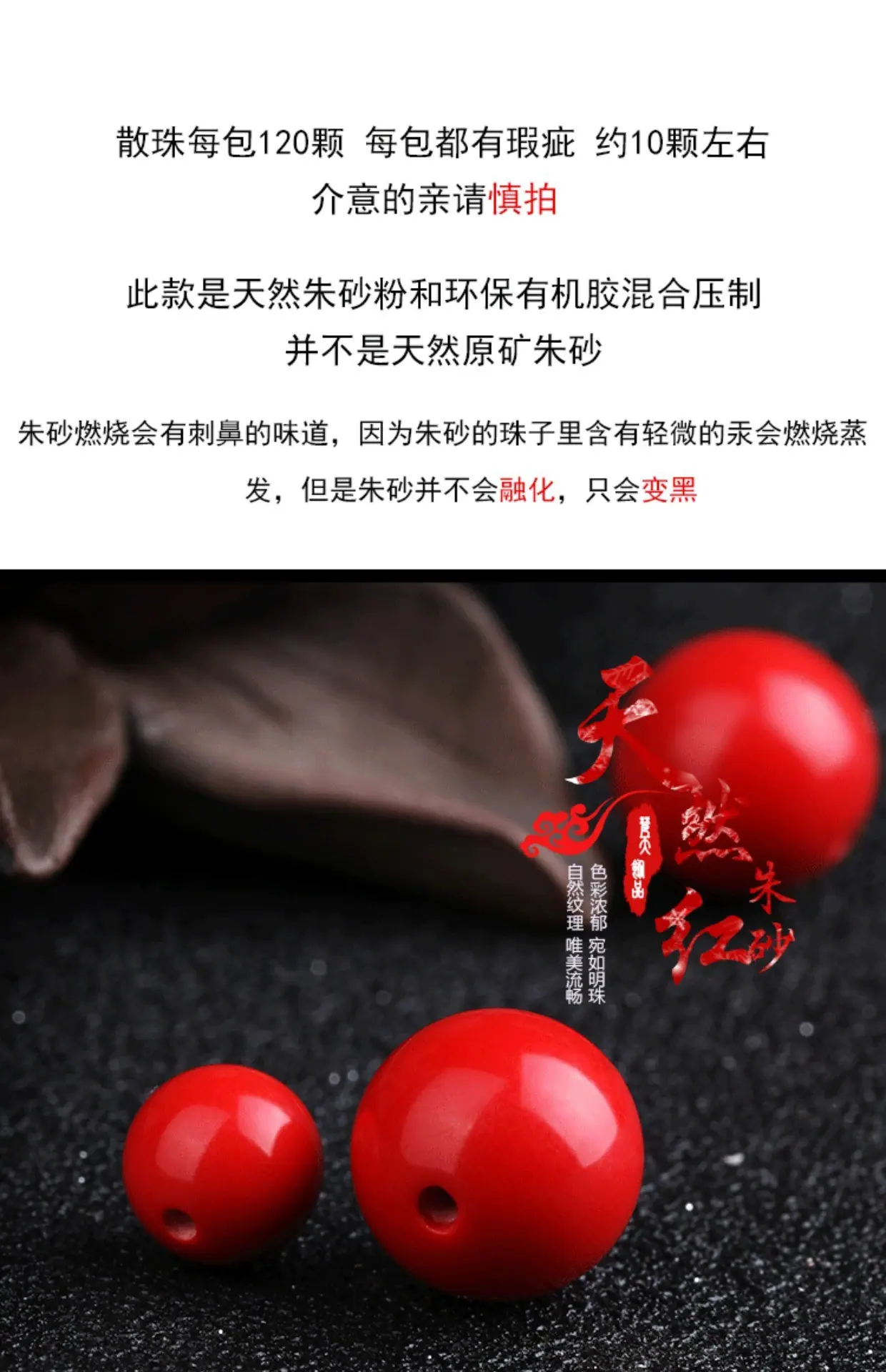 Cuentas sueltas de cinabrio rojo cuentas redondas diy pulsera de cuentas hecha a mano joyería de texto con cuentas pulsera tejida con material de cuentas