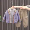 Traje de ropa de otoño para bebé, guapo conjunto de tres piezas para niño, cárdigan suéter para niños, estilo coreano, nuevo de primavera y otoño, moda infantil
