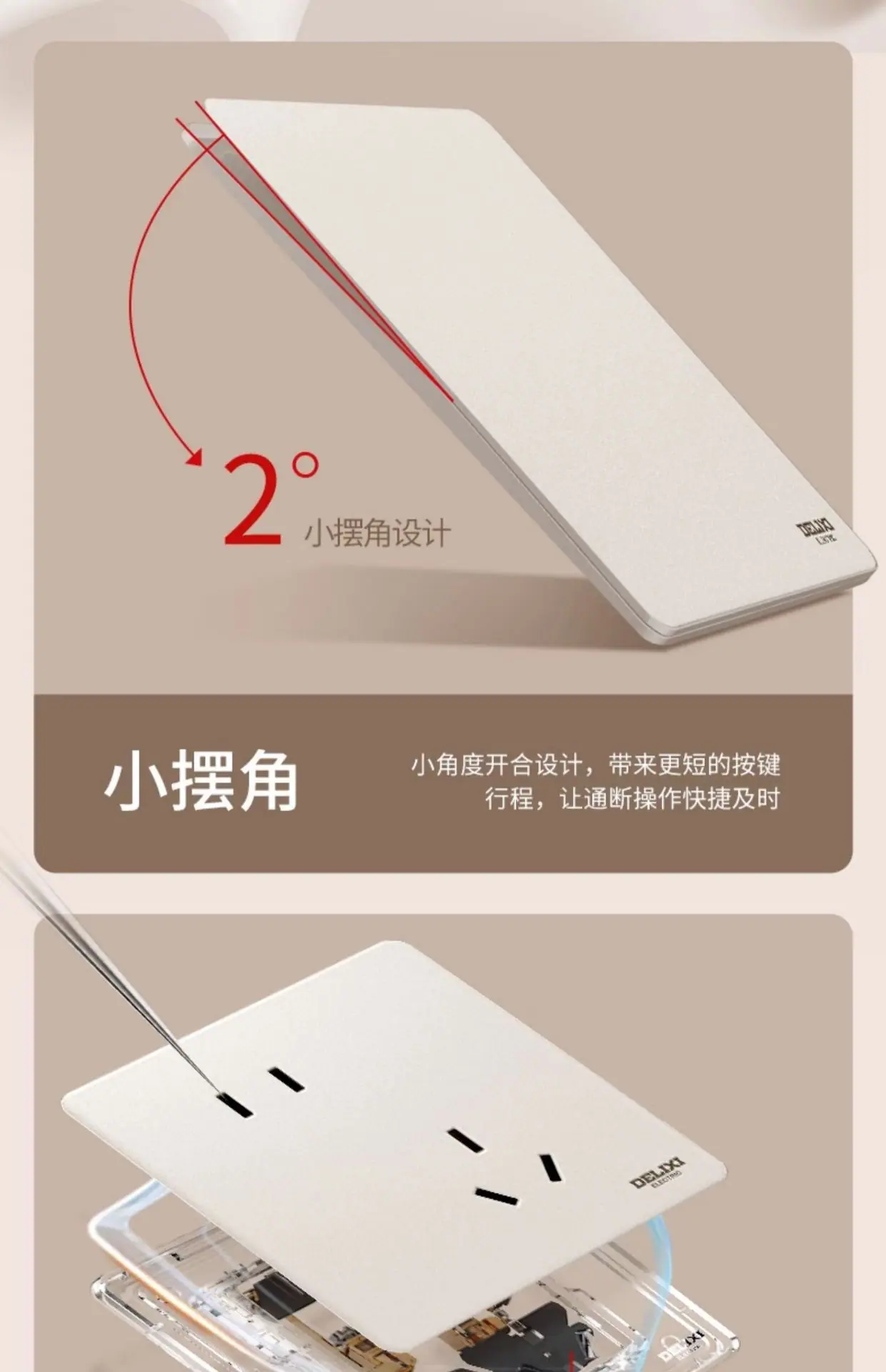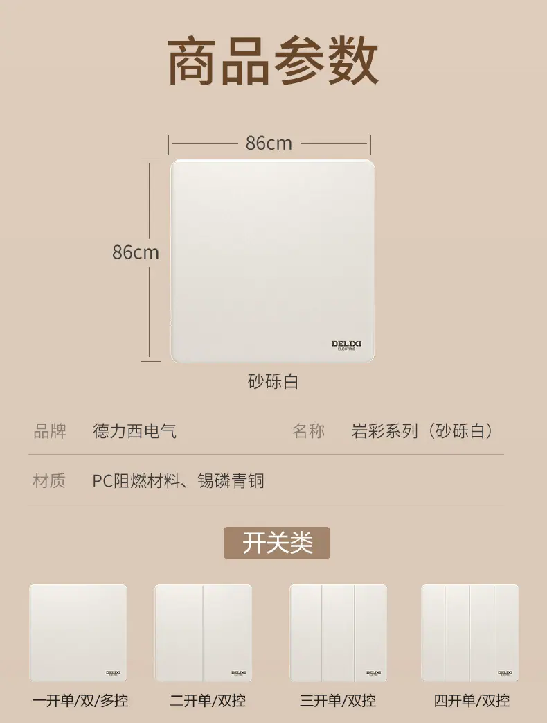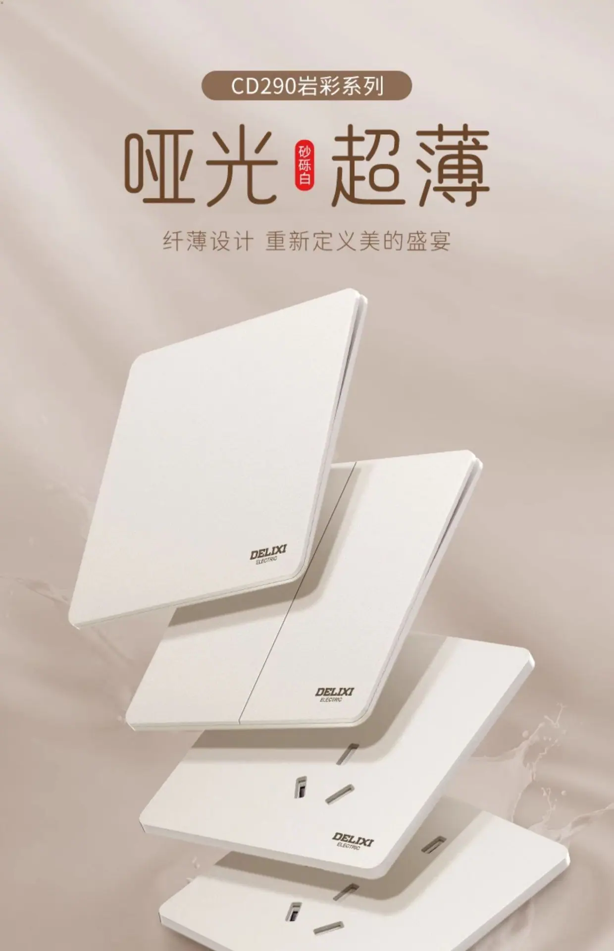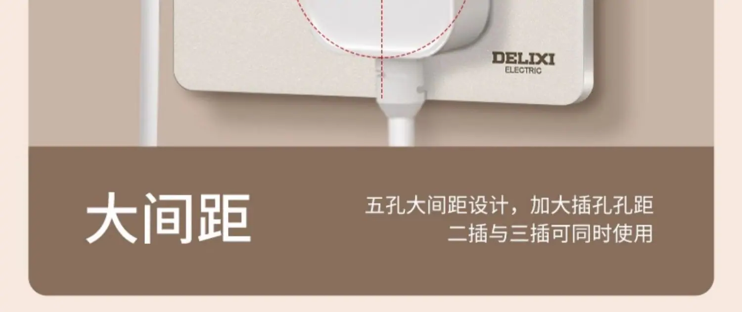 Delixi interruptor enchufe pared apertura cinco orificios tipo 86 enchufe doméstico CD290 blanco grava panel ultradelgado