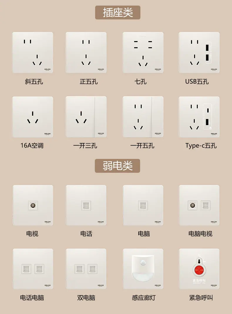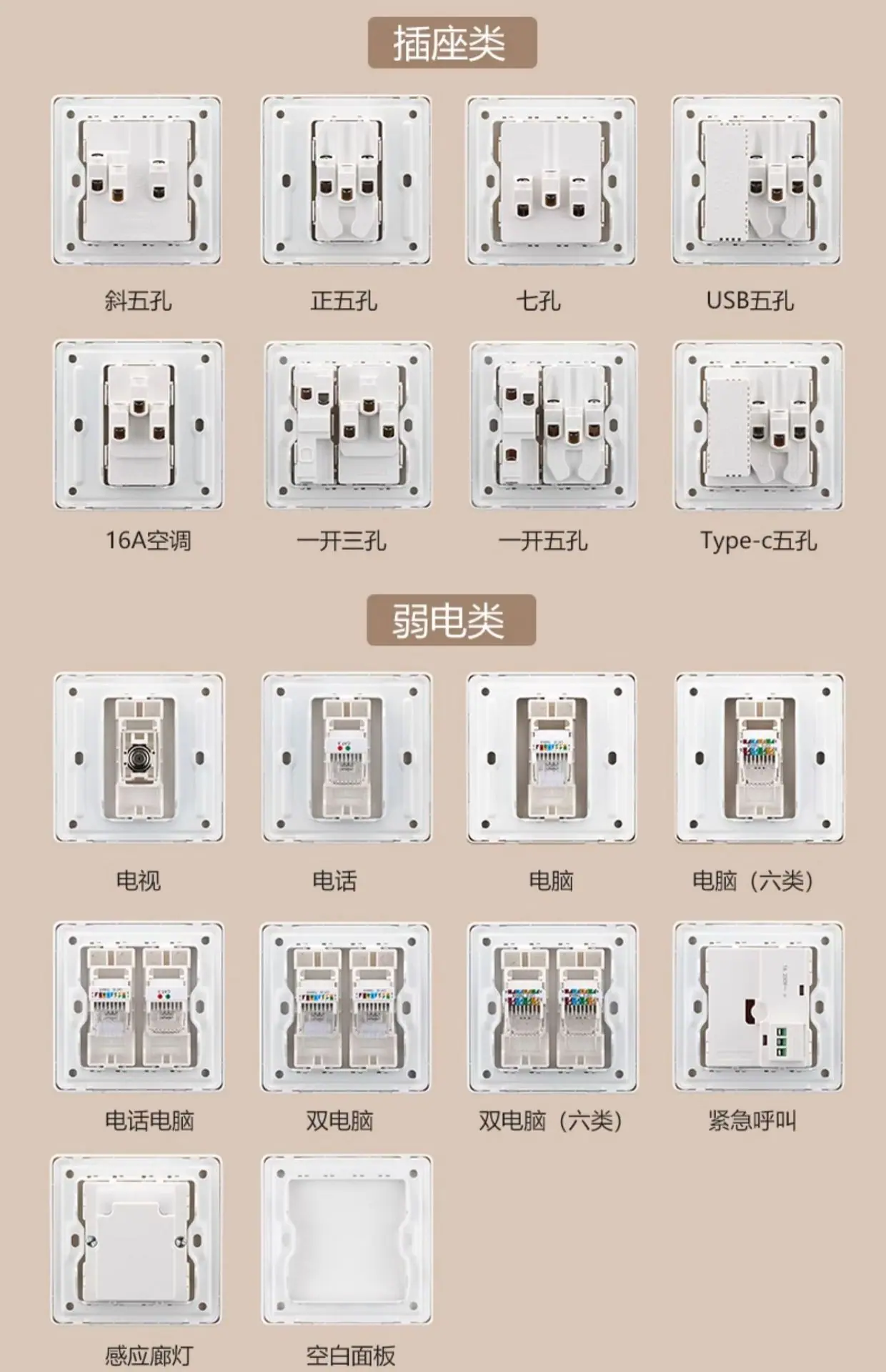 Inclined five holes, Positive five holes, Three-hole 16a (air conditioning socket), One open single control th...