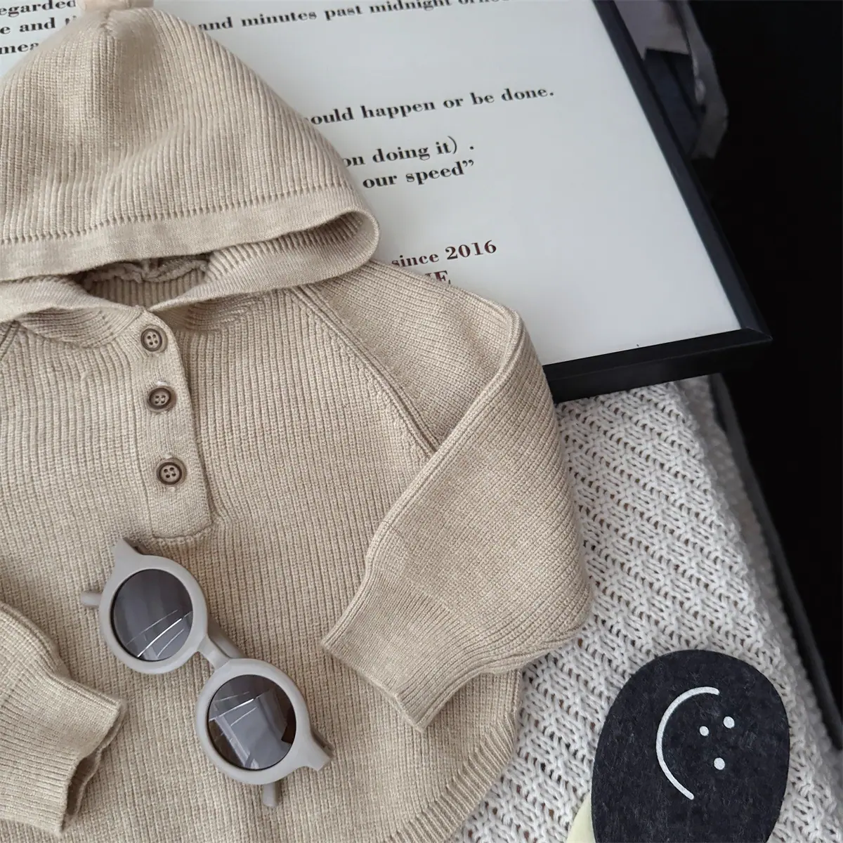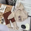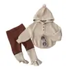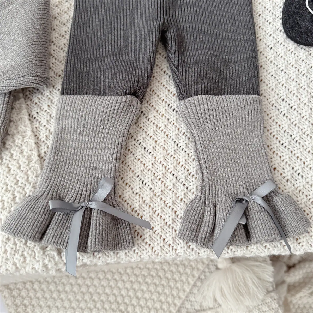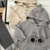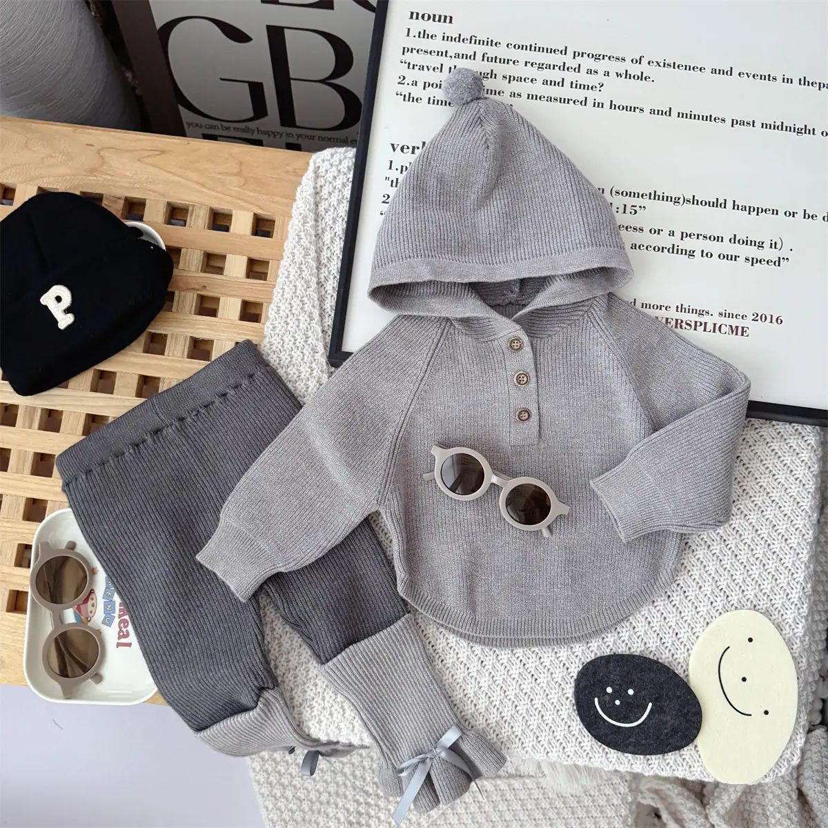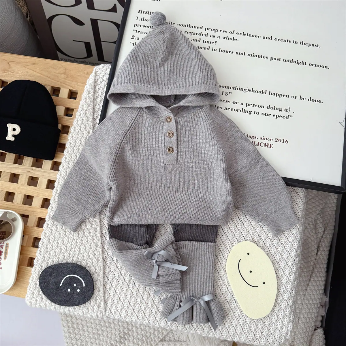 Conjunto de dos piezas de suéter de lana tejida para niñas a la moda estilo coreano, otoño e invierno, gorro puntiagudo, albaricoque, top moderno + conjunto de pantalones