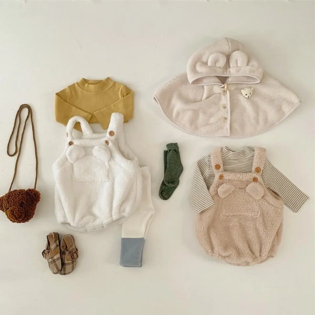 Bebé Infantil Otoño Invierno Felpa Tridimensional Orejas de Oso Mameluco Niños Niñas Estilo Peto Traje Triangular para Gatear