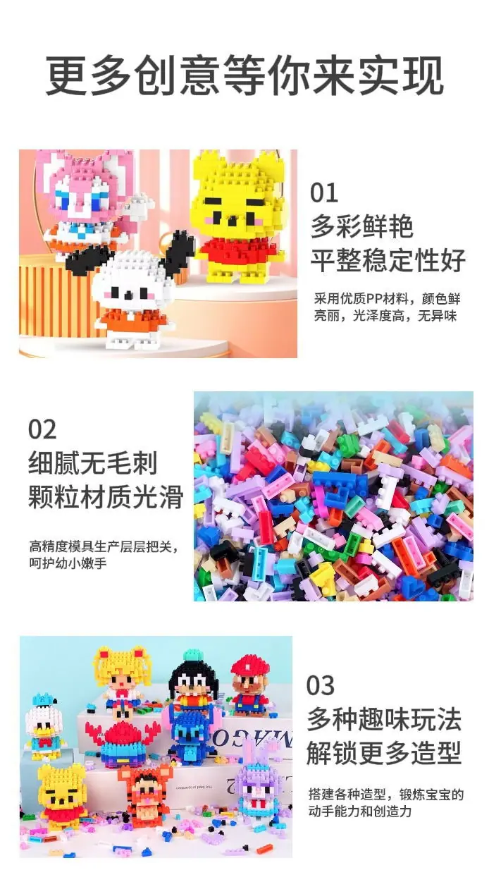 Bloques de construcción educativos de micropartículas para niños, juguetes de muñecos de dibujos animados compatibles con Lego, para niños y niñas, colgante de puesto ensamblado, regalo