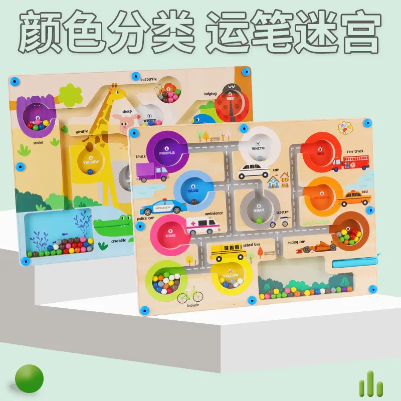 Venta al por mayor transfronteriza Juguetes educativos para niños, educación temprana, iluminación, clasificación de colores, juegos de cuentas, laberinto de cuentas de madera para bebés