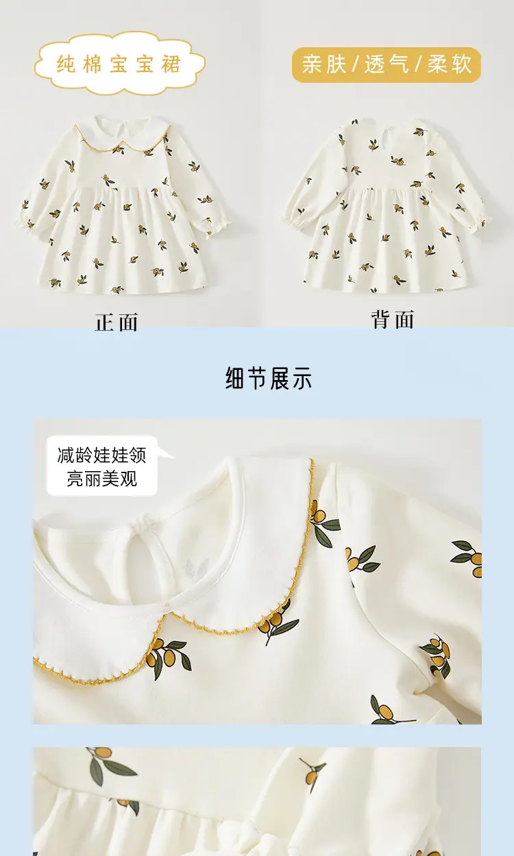 2261 purple flower pure cotton baby long-sleeved dress, 2262 Olive Pure Cotton Baby Long Sleeve Dress, 2241 Mu...