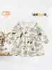 Vestido de Algodón Puro para Bebé con Cuello Vuelto para Niños Nuevo Estilo Clase A Primavera y Otoño Vestido para Bebé con Cordón Ajustable Mono para Bebé para Niñas